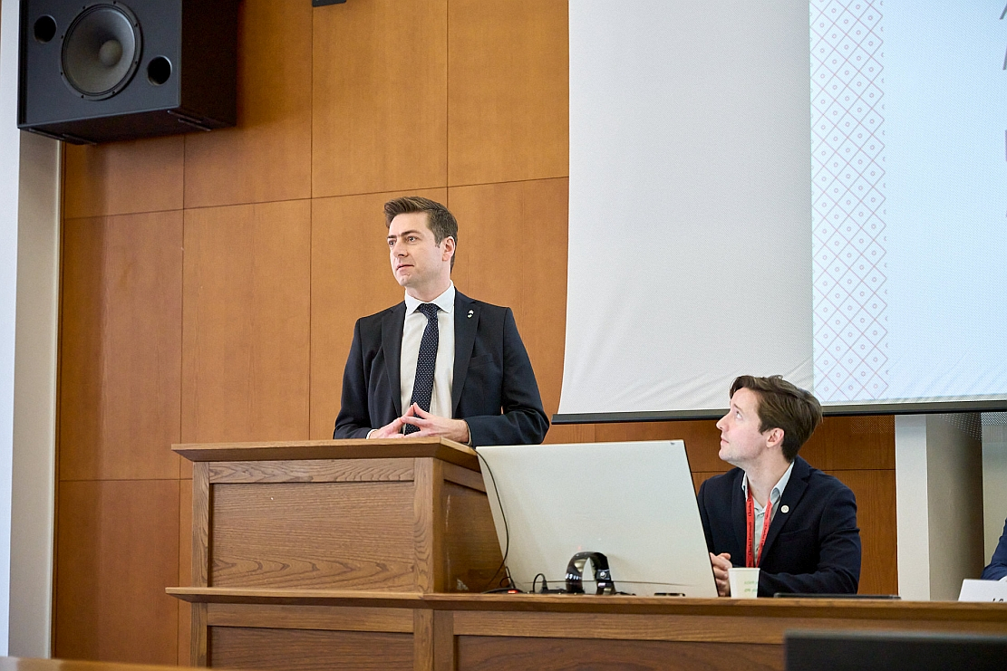 The last bloc of the conference on Friday wrapped up around 6 pm. The final speaker to present was Matyáš Moravec who gave a personal account of what studying abroad had meant for him. While he himself is not a CU alumnus, the philosopher, based at the University of St. Andrews, recommended the experience of studying abroad to all who wanted to broaden their horizons, and joint study programmes as an exceptional way to thread the needle with benefits post-graduation. What was needed, he suggested, was raising greater awareness already at the high school level, so potential university enrolees would know more about their options and where the road might take them next.