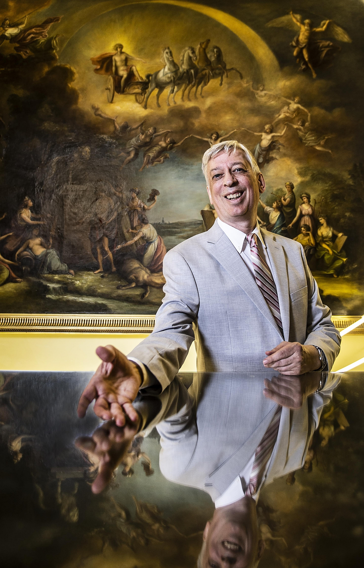 The musicologist inside one of the grand rooms at Prague's Estates Theatre where Mozart premiered Don Giovanni.