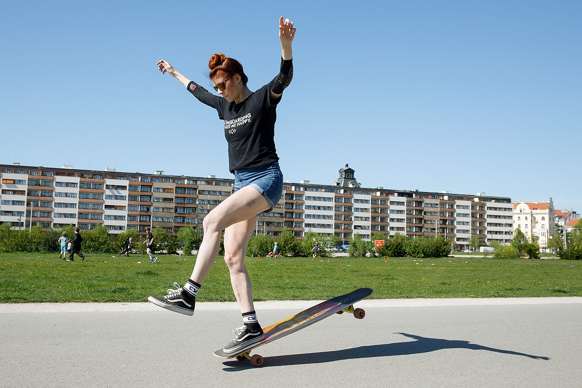 Cruisers, dancing boards, longboards, motorised boards: you’ll see any number of those any given day at Letná Park and other parts of the city. Top riders like Valérie and her crew also ride at Letná on occasion while Max sometimes takes the biggest hills down into Stromovka Park (easy for him, Everest for the rest of us).
