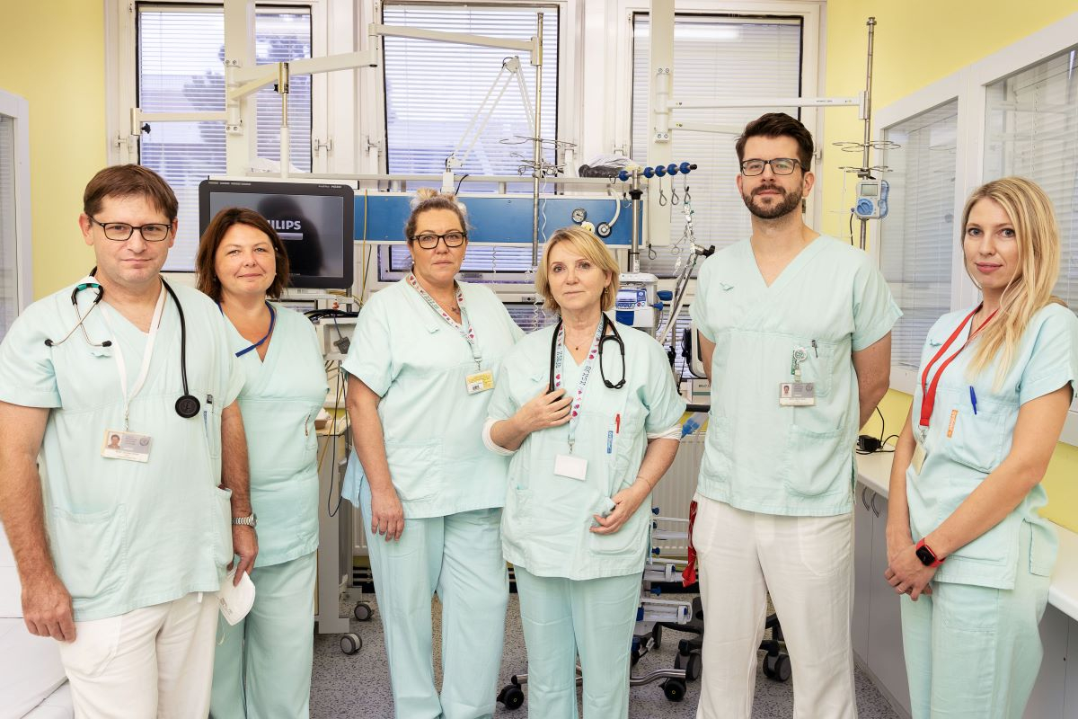 nurse of the coronary unit, Denisa Odvodyová – station nurse, Professor Motovská, Dr Martin Kozel, Dr Karolína Poledníková.