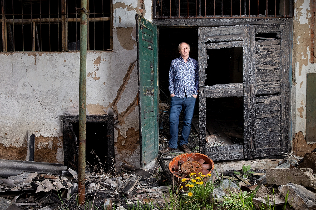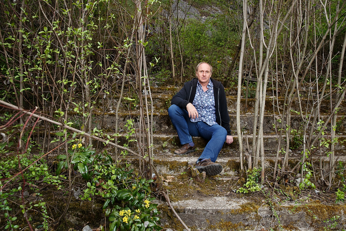 Social anthropologist Radan Haluzík, an expert on terrain vague in the Czech Republic, poses by a building that has seen better years.