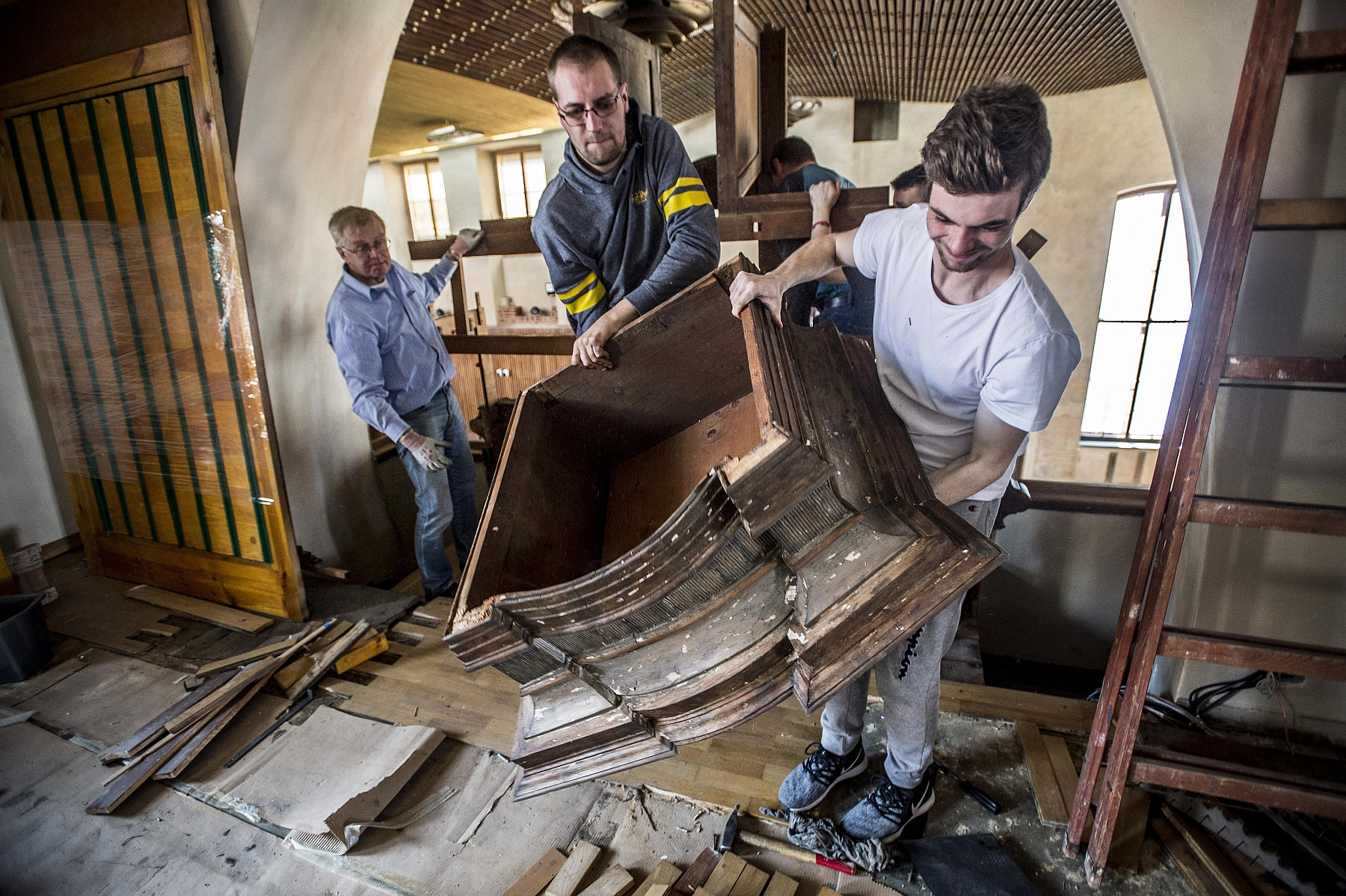 The university commissioned the new pipe organ from the German family firm Orgelbau Vleugels but before it can be installed, long before a single new note will float acorss the hall at at Christmas concert in December, the space for the instrument needs to be prepped. The floor above and balcony overlooking the Great Hall that visitors normally never see but peer upwards when the music begins. How far along is the project? Forum spoke to Charles University’s organist Jan Kalfus while Forum photographer Vladimír Šigut captured scenes of repairs underway.