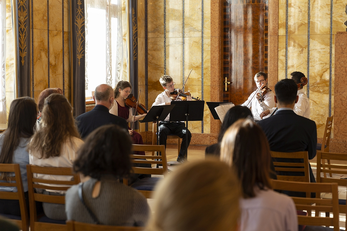 AMU's Ševčík Quartet performed works by Mozart to conclude the official ceremony at the Prague mayor's residence on 3 December, 2021.