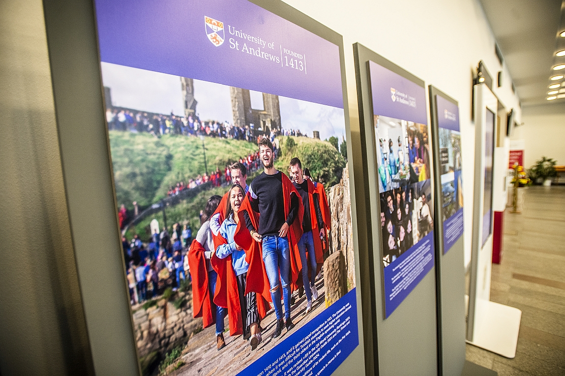 Reps from the University of St Andrews attend opening of exhibit at CU. St Andrews and CU share a strategic partnership. 31 October 2023
