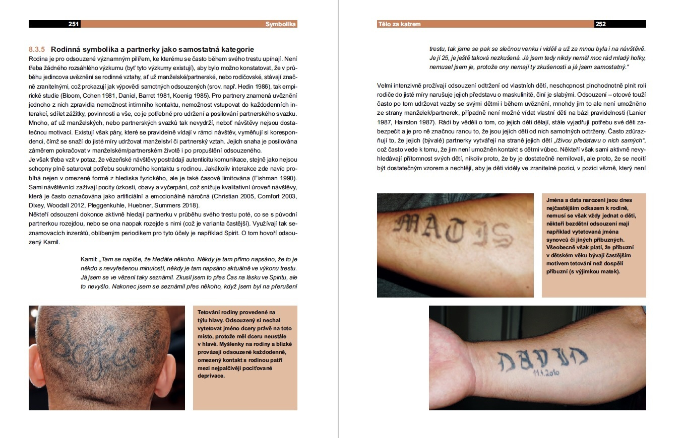 Yes, it is. The act of getting tattooed is a transformation and feeling physical pain is an important part of it. Tattoos can range in meaning from a declaration of status to signifying gender (regardless of whether you were born a biological male). Sometimes prisoners will tell you that a tattoo “means nothing.” But there is always some meta-communication potential simply because tattoos are not allowed in Czech prisons. The very act of getting an illegal tattoo behind bars, an act that is punishable by the authorities, sends a message. An illegal tattoo can not only complicate a convict’s time in jail, it can also jeopardise their chance of getting an early release. So behind bars, every tattoo in prison is important, even one that is only ornamental. At the same time, you have to perceive the person’s whole body: how they move or carry themselves, as well as where they fit in. You can have a very rigid code of tattoos and symbols, for example, when it comes to Russian-speaking inmates. There, you can’t just get any tattoo you like, especially if you haven’t merited it. The tattoo you can get within such a gang depends on your past and on your criminal career. There is a deep-rooted and traditional symbolism and a “correct” coding grid among Russian prisoners which is fascinating.