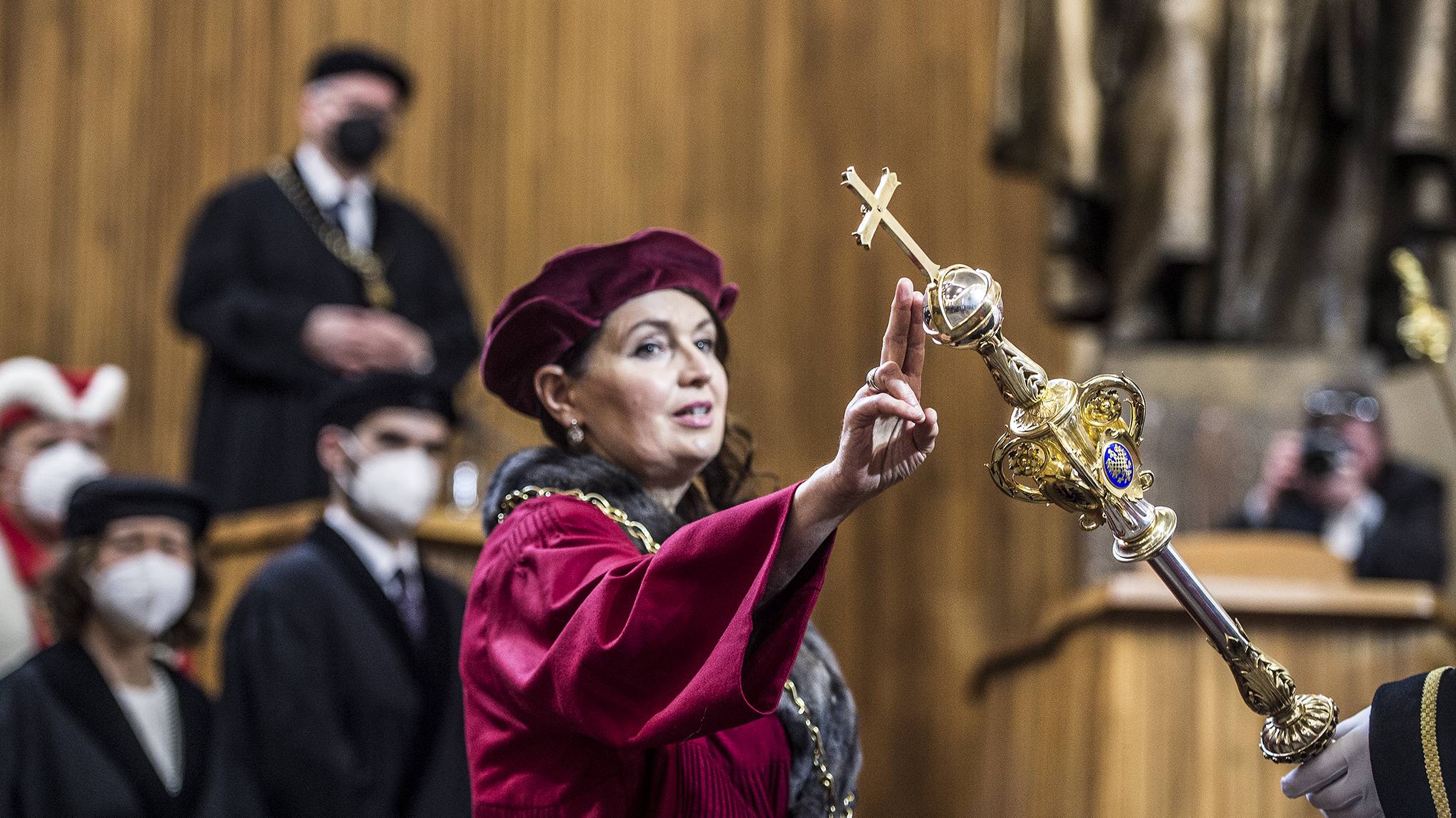 • Rektorka Milena Králíčková převzala žezlo, řetěz i mandát