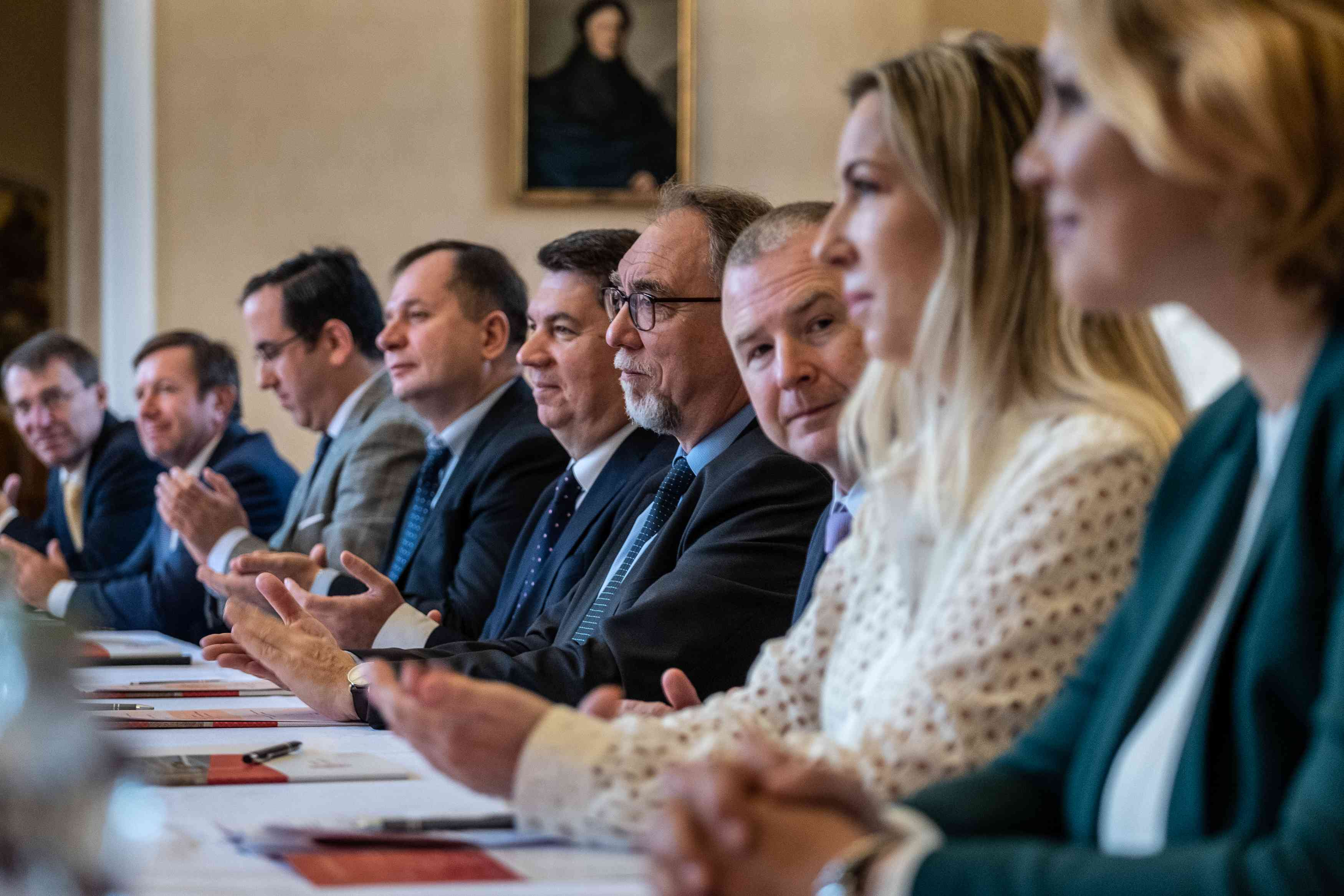 In addition to the rectors and CU’s Vice-Rector for International Affairs Markéta Křížová, the meeting and the ceremony in the Patriotic Hall were also attended by representatives of the Ministry of Education (including Deputy Minister Jaroslav Miller, rector emeritus of Palacký University; pictured here at the podium), the Ministry of Foreign Affairs and the diplomatic corps.