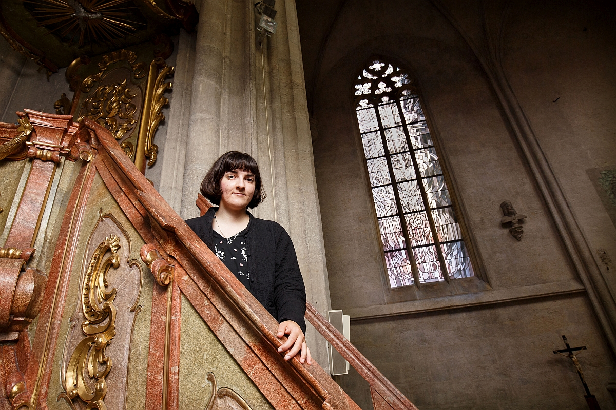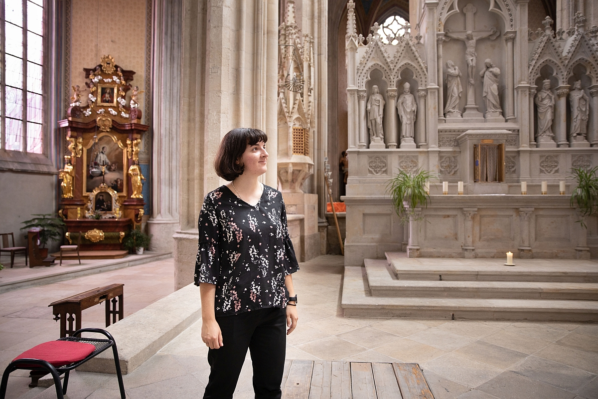 The Church of St. Bartholomew in Kolín is a national cultural monument and for good reason. It is one of the most impressive examples of Gothic architecture in Central Bohemia. Among the church’s many gems are extraordinary stained glass windows. These caught Anna Bartoňová's eye.; she is a student at the Catholic Theological Faculty.
