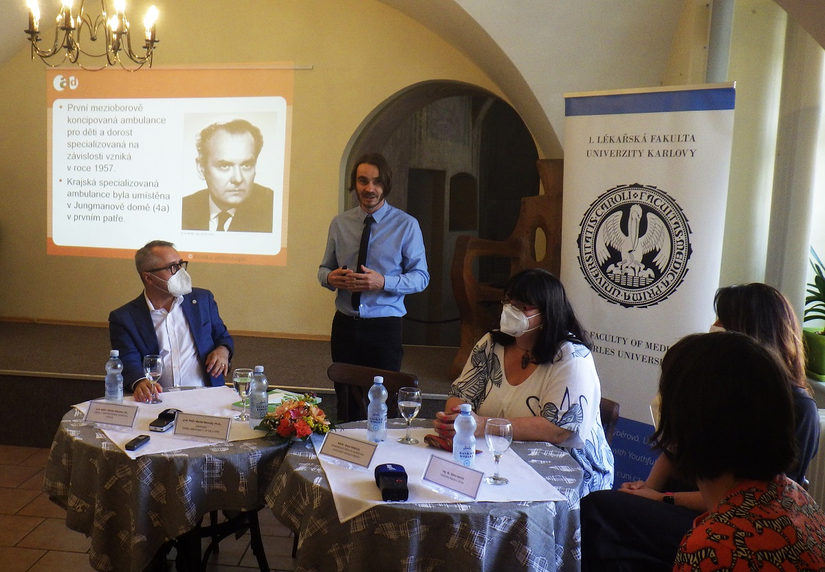 Vzdělávací kurz pro praktické pediatry představil Michal Miovský(uprostřed) a Alena Šebková (vpravo). Setkání s novináři se zúčastnil i Martin Vokurka, děkan 1. lékařské fakulty UK (vlevo).