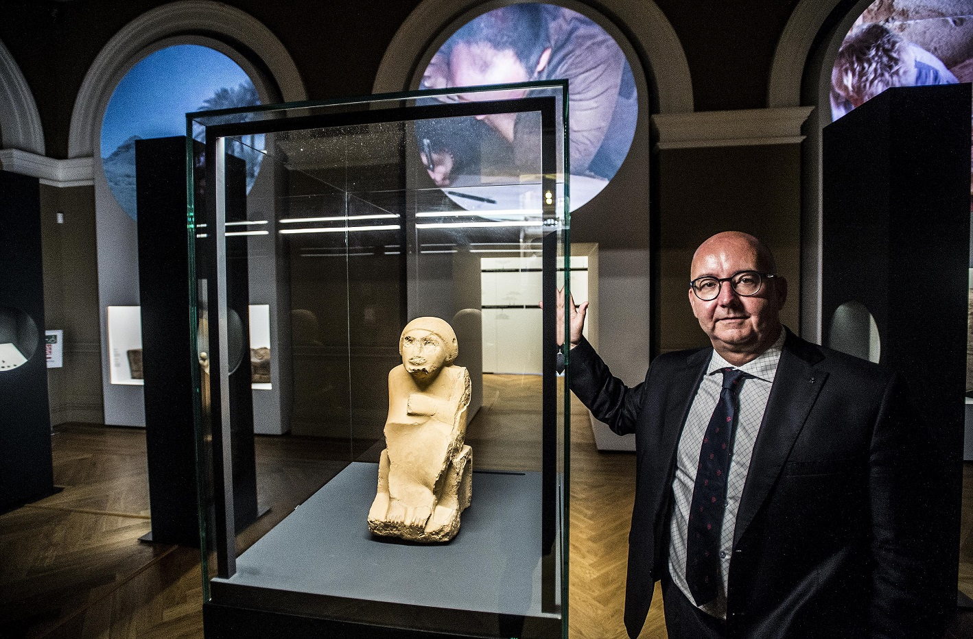 Miroslav Bárta dělí svou práci mezi pracovnu v Celetné ulici, kde sídlí ČEgÚ FF UK, terénní práce v Egyptě i veřejné aktivity (na výstavě, NM 2020).