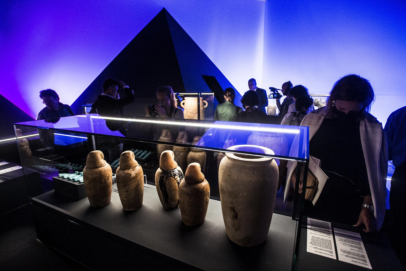 V roce 2020 zahajoval Miroslav Bárta (u pultu) velkolepou výstavu Sluneční králové v Národním muzeu - cenné artefakty zapůjčil Egypt.
