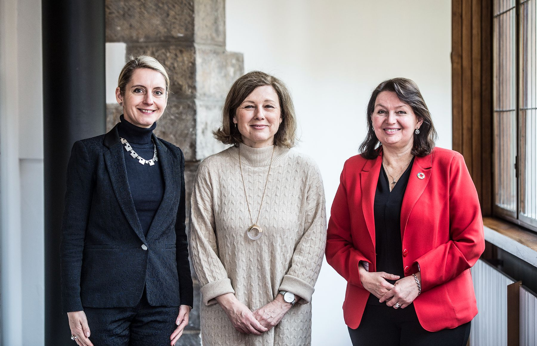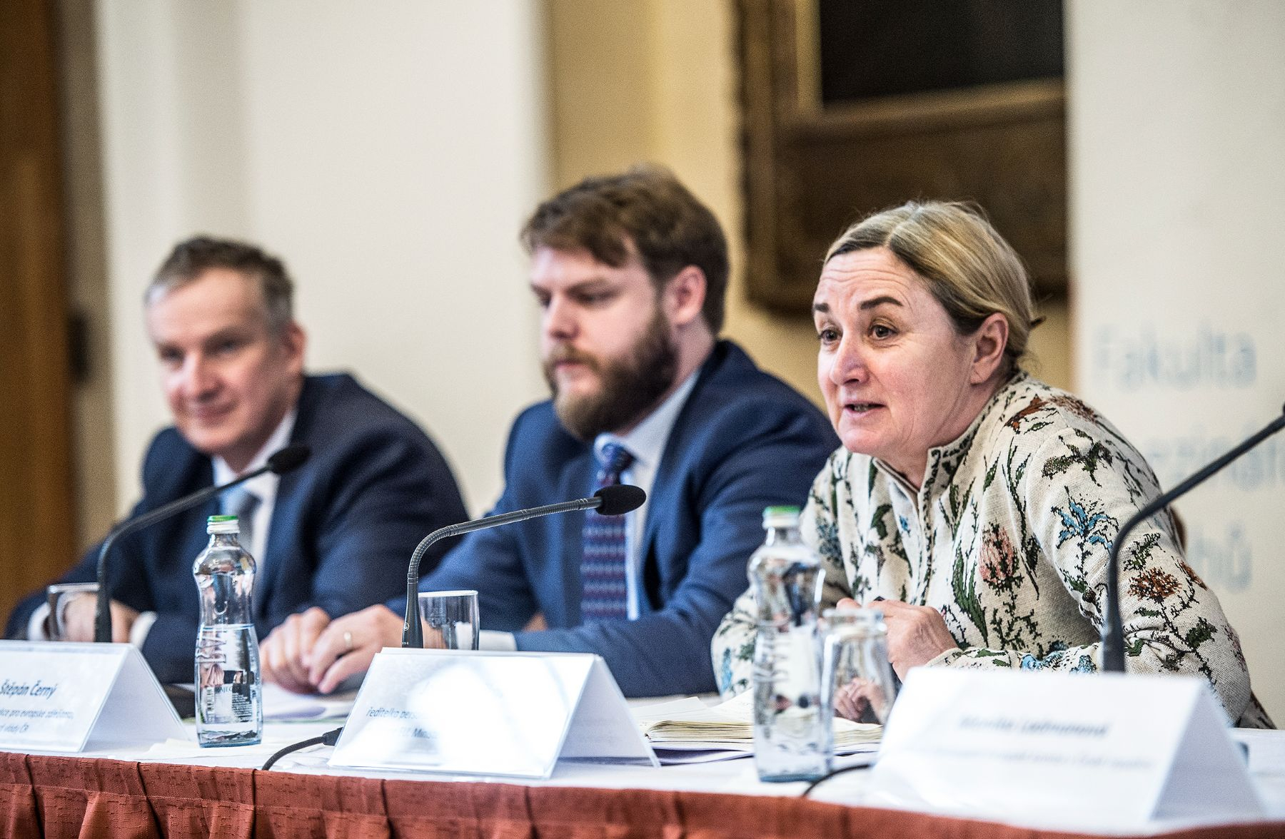 Zleva Monika Ladmanová, vedoucí zastoupení EK, místopředsedkyně EK Věra Jourová a rektorka UK Milena Králíčková.