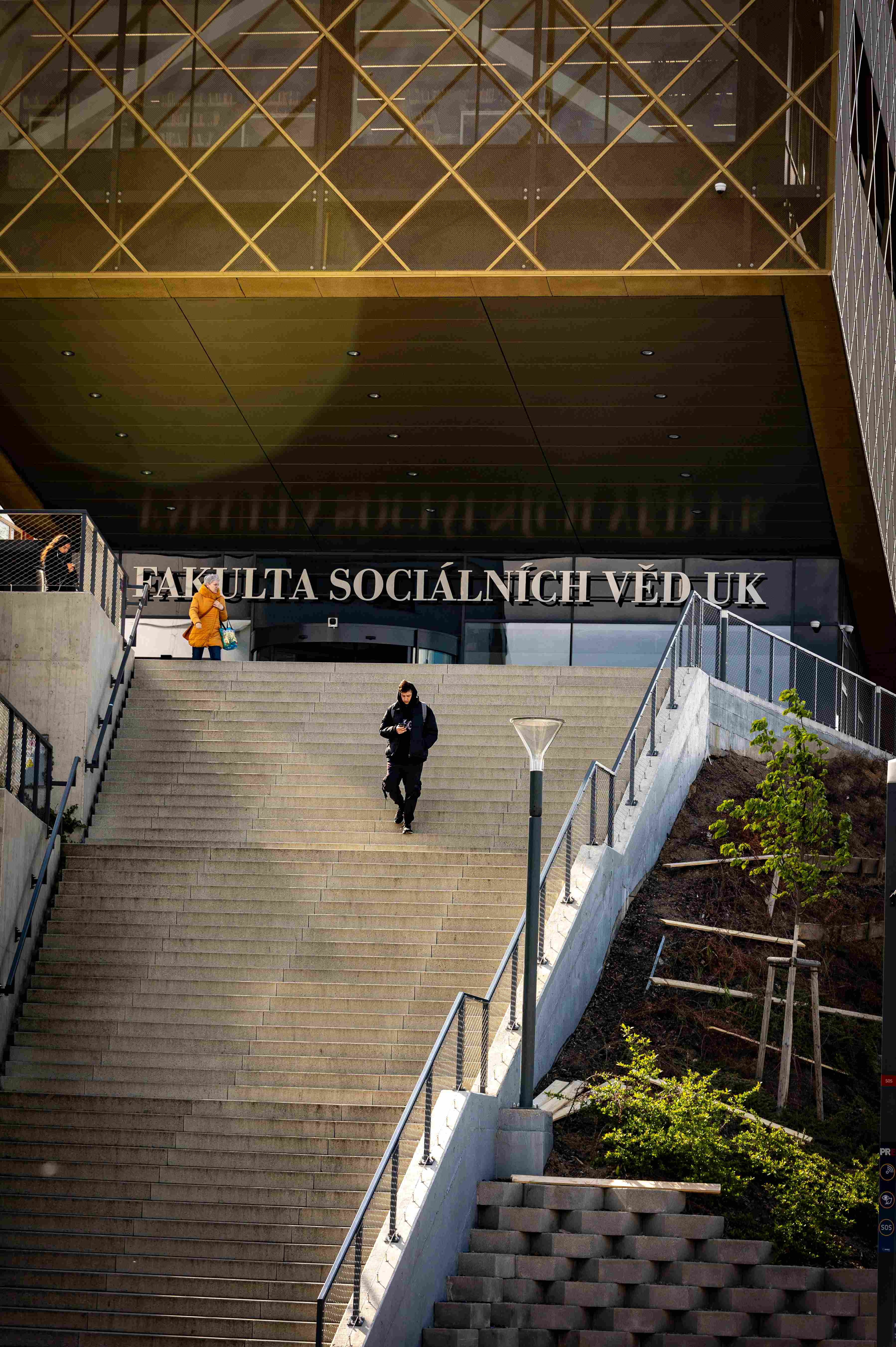 Kdo by si snad naivně utahoval ze studentek a studentů společenských věd, že nejsou fyzicky zdatní, bude muset v Jinonicích na Praze 5 zřejmě trochu přehodnotit svůj názor. Ke vstupu do nové dominanty Fakulty sociálních věd UK musí příchozí od metra trasy B překonat příkrý svah a desítky schodů, nad nimiž se tyčí impozantní dominanta: nová budova kampusu! A nad jejím vchodem se vyjímá název FSV UK; v útrobách výrazného objektu se skrývá především moderní knihovna.