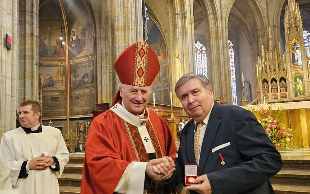 Pražský arcibiskup Jan Graubner udělil profesoru Michalu Tomáškovi Svatovojtěšskou medaili.