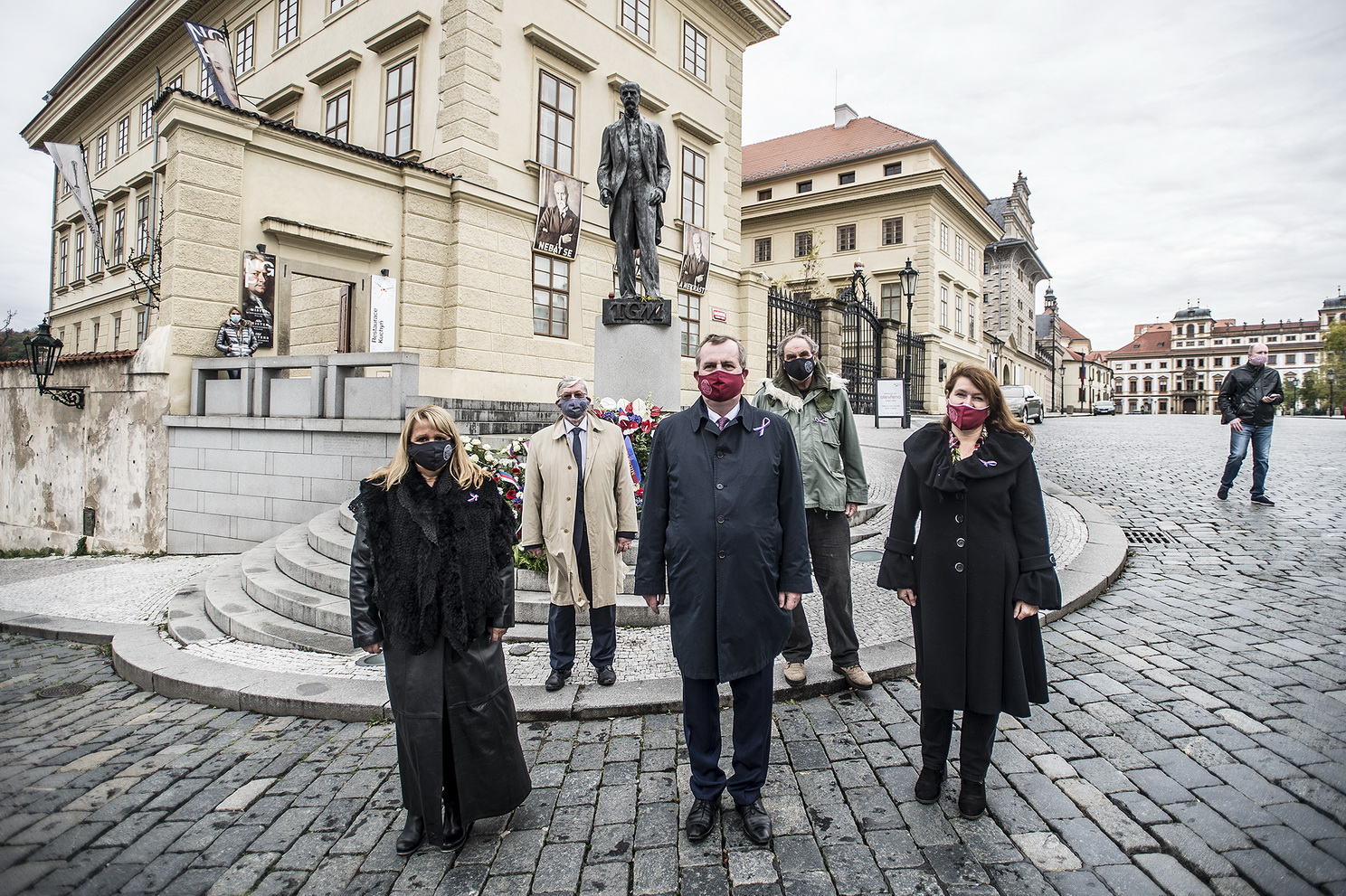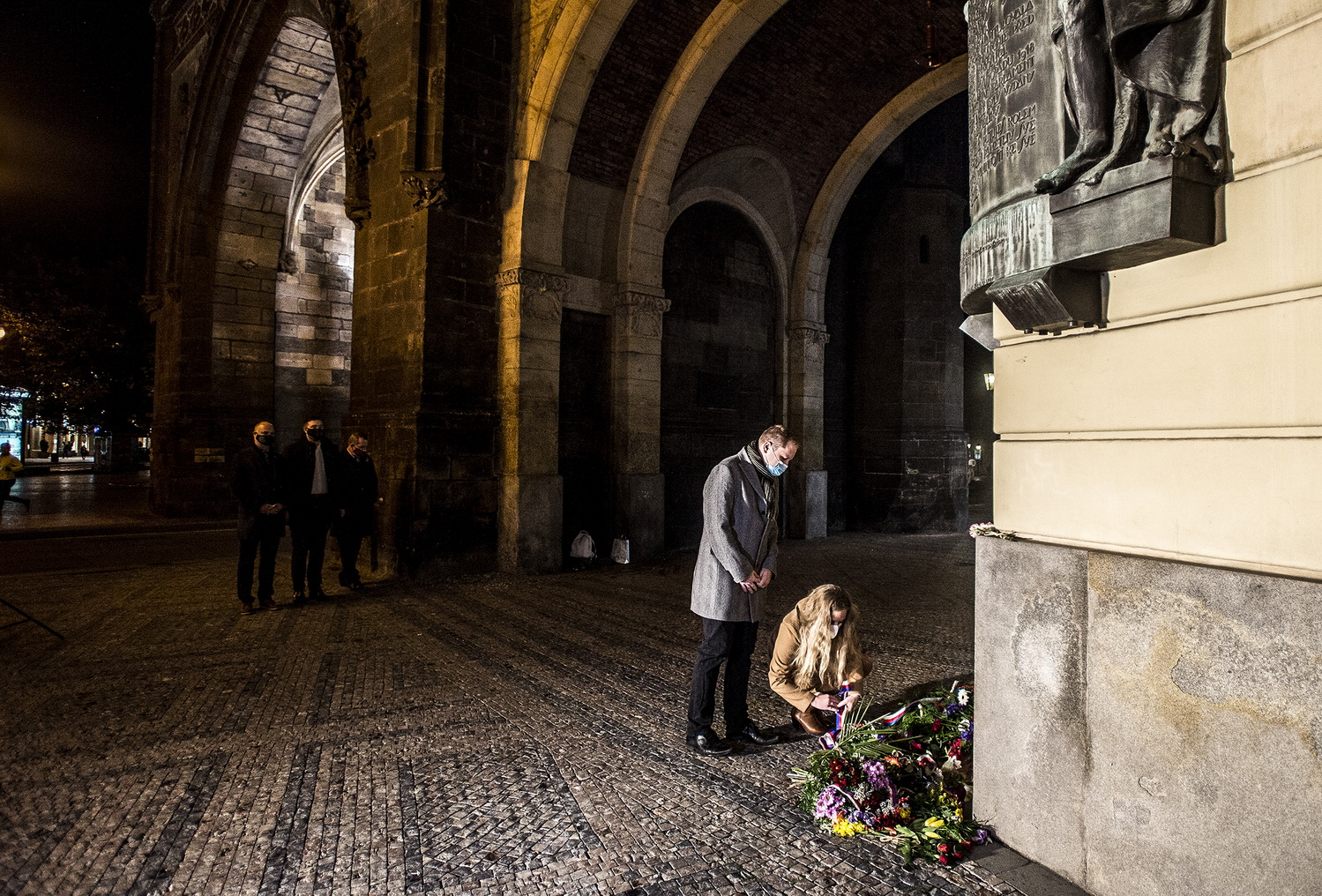 Rektora Zimu doprovodili v Den vzniku samostatného československého státu na pietní místa v metropoli mimo jiné prorektoři UK Radka Wildová, Milena Králíčková, Jan Royt a Aleš Gerloch, kteří se též poklonili památce zakladatele Československa - prezidentu T. G. Masarykovi.