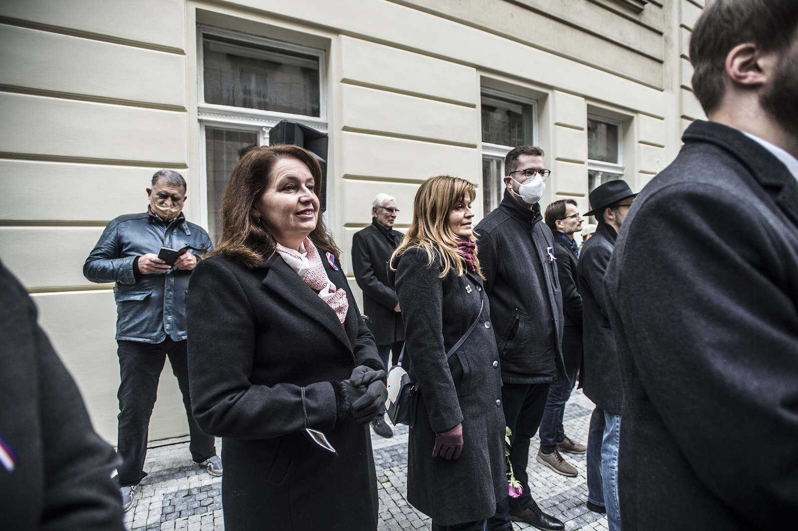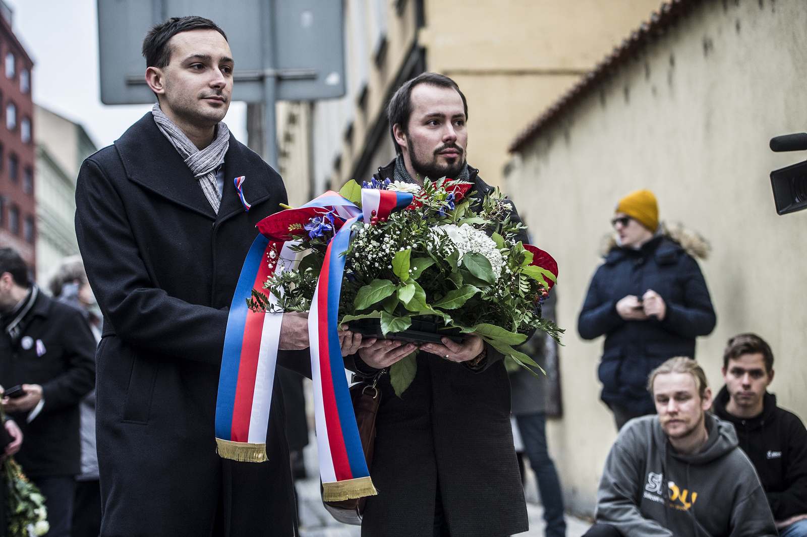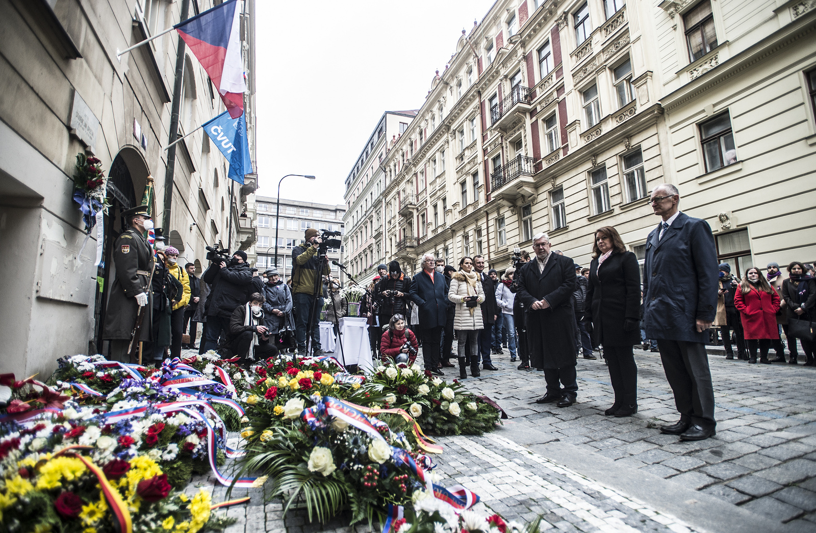 Studentskou památku uctilo vedení UK: rektor Tomáš Zima i prorektoři Miroslav Bárta, Jan Konvalinka či Milena Králíčková, budoucí rektorka UK.
