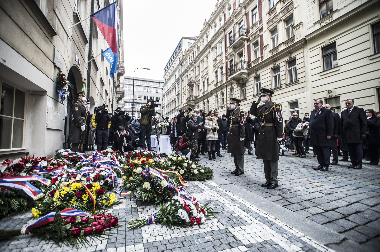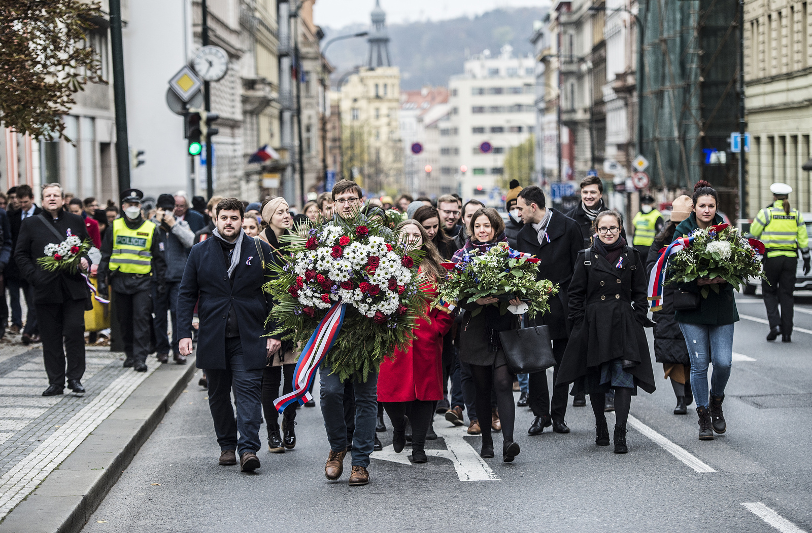 Tradiční slavnostní akty však začaly již ráno po deváté hodině, kdy vedení Univerzity Karlovy (spolu s budoucí rektorkou Milenou Králíčkovou) položilo věnce u Hlávkovy koleje s dalšími zástupci vysokých škol.