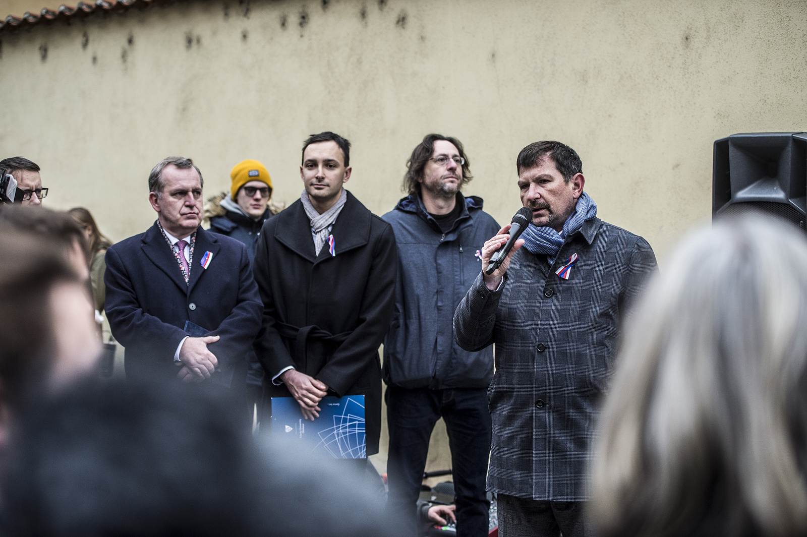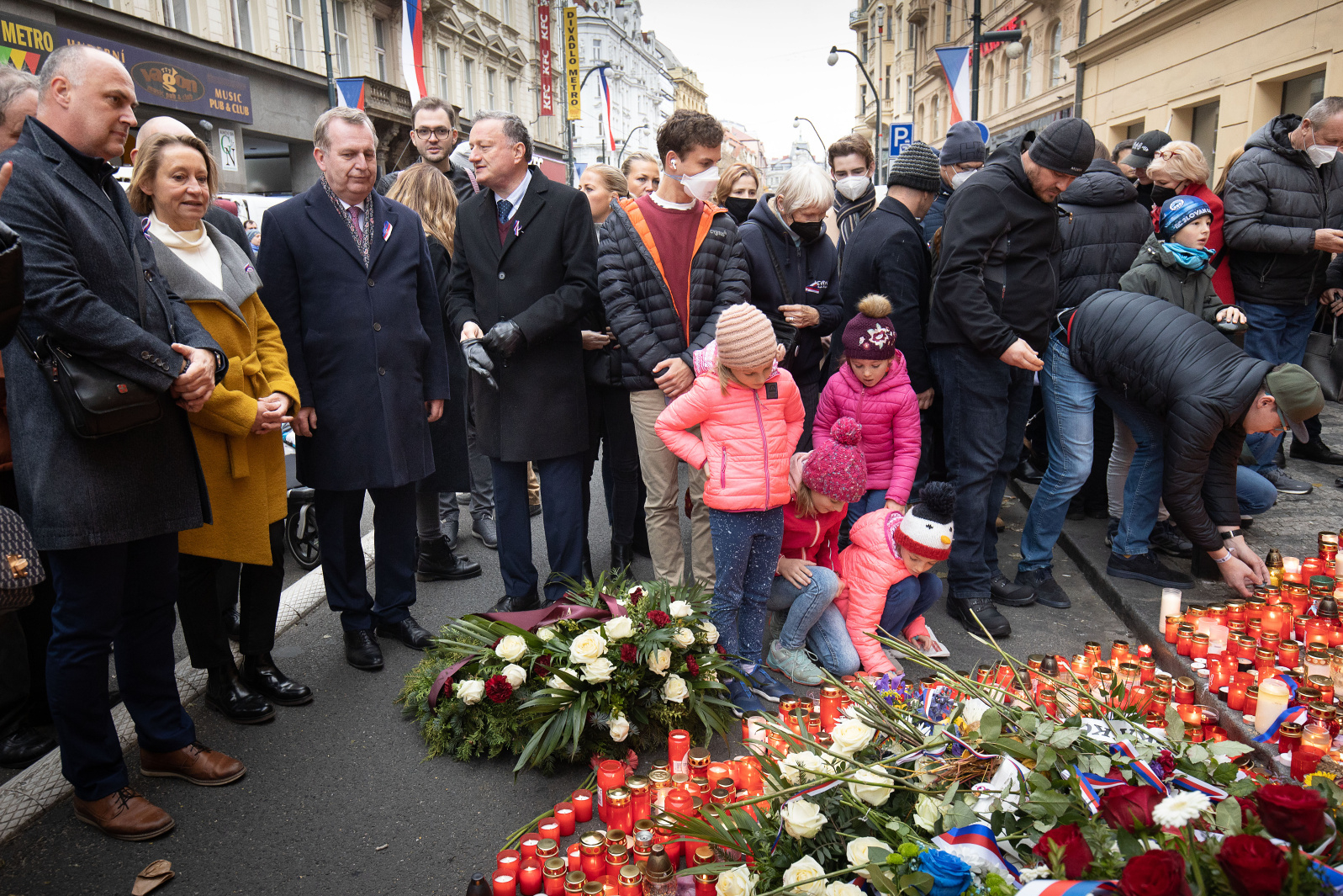 Účastníci setkání položili u pamětní desky věnce a zapalovali svíčky. Profesor Milan Pospíšil, předseda Rady vysokých škol (RVŠ), hovořil z pódia o naději pro zemi, ve které bude společnost držet pospolu.