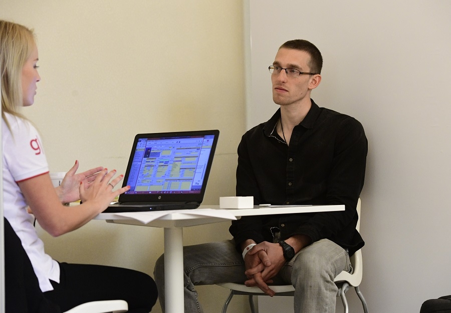 „Vzhledem k tomu, že jsem teprve v prvním ročníku, stálé zaměstnání ještě nepotřebuji, ale určitě informace odsud využiji při hledání stáže nebo brigády,“ prozradila dívka s tím, že by ji lákala práce v diplomacii a několik reálných pracovních pohovorů už má za sebou: „Ptala jsem se rodičů, jak probíhají, abych byla připravena. Ale slyšet to od lidí z praxe je něco úplně jiného.“ Dopolední blok volně přístupných přednášek svůj účel splnil, po něm Barbora plánovala zajít na pohovor nanečisto a koučink, na něž se dopředu zaregistrovala. Vedle nových informací si od setkání s profesionály slibovala především to, že by jí mohla pomoci zmírnit trému, kterou zažívá před každou podobnou schůzkou. „Přesně to byl důvod, proč jsme pohovory nanečisto do programu zařadili,“ potvrdila Mariana Žuravová z Informačního, poradenského a sociálního centra UK, jedna z organizátorek Kariérního dne. „Přáli bychom si, aby lidé pochopili, že pohovor sice je uměle vytvořená nepříjemná situace a každý je z něj přirozeně nervózní, ale je nutné být při něm co nejvíce autentický a uvolněný. Toho člověk docílí nejlépe tím, že si to prostě zkusí předem a zjistí, co ho čeká a že se není čeho bát. Až bude doopravdy hledat práci, dokáže už na konkrétní dotazy adekvátně reagovat.“ Toto je smyslem nejen tréninkového pohovoru, ale vlastně celého Kariérního dne na UK – ukázat studentům, co je čeká, až opustí učebny a vykročí vstříc svému prvnímu zaměstnání. Že se není čeho bát, ale je dobré vědět a znát, na co se vás mohou ptát a co od vás budou za slušný plat také požadovat.