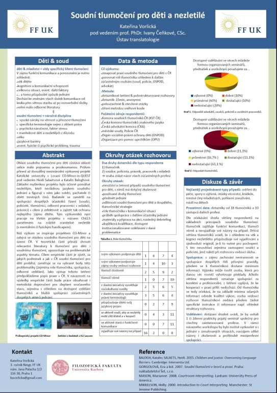 „Věda se tématu soudního tlumočení pro děti a nezletilé velmi opatrně vyhýbá, materiály k tomuto tématu jsou celkem vzácné. Takže jsem moc ráda, že mi stipendium umožnilo vycestovat do Belgie a setkat se s autory jediného výzkumu, který se této specifické problematice věnuje.“ Kateřina Vorlická, studentka 3. ročníku navazujícího magisterského studia na FF UK a autorka výzkumného projektu Soudní tlumočení pro děti a nezletilé.