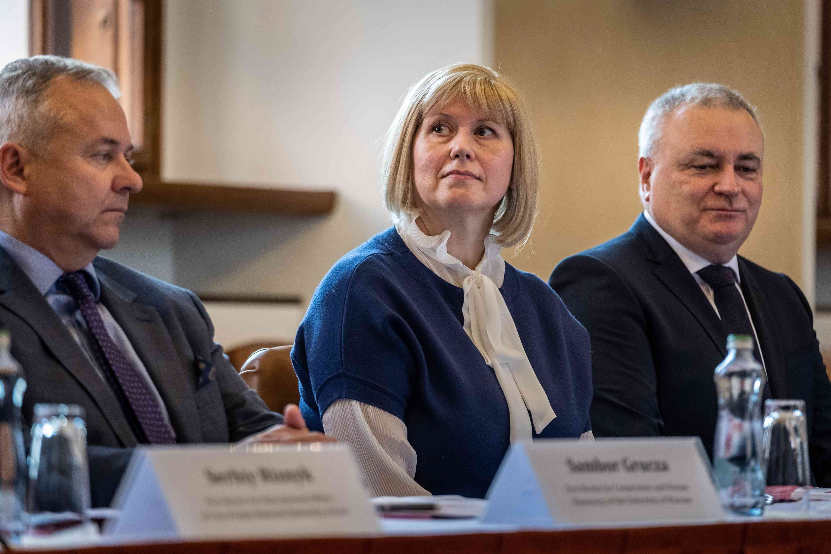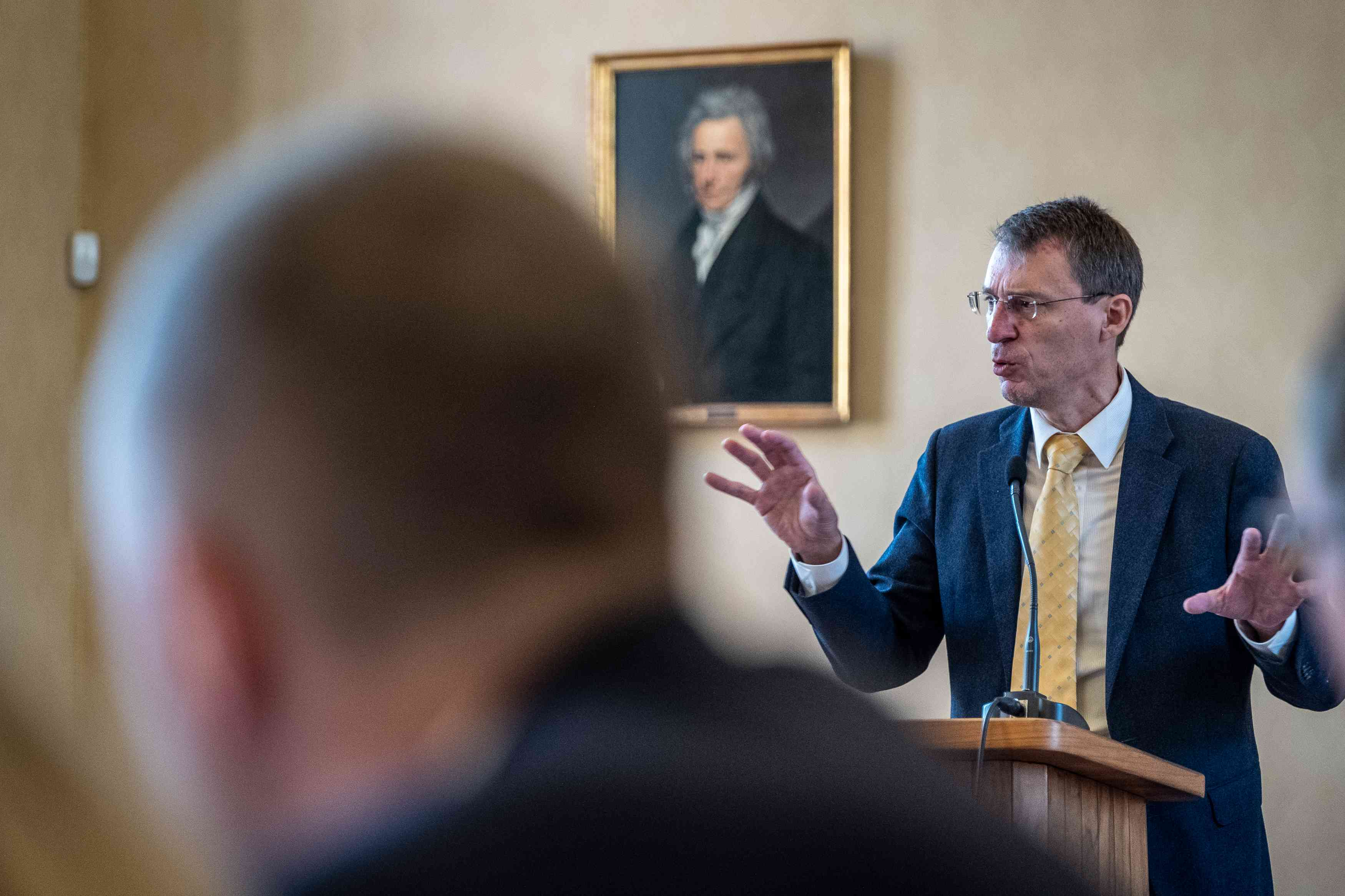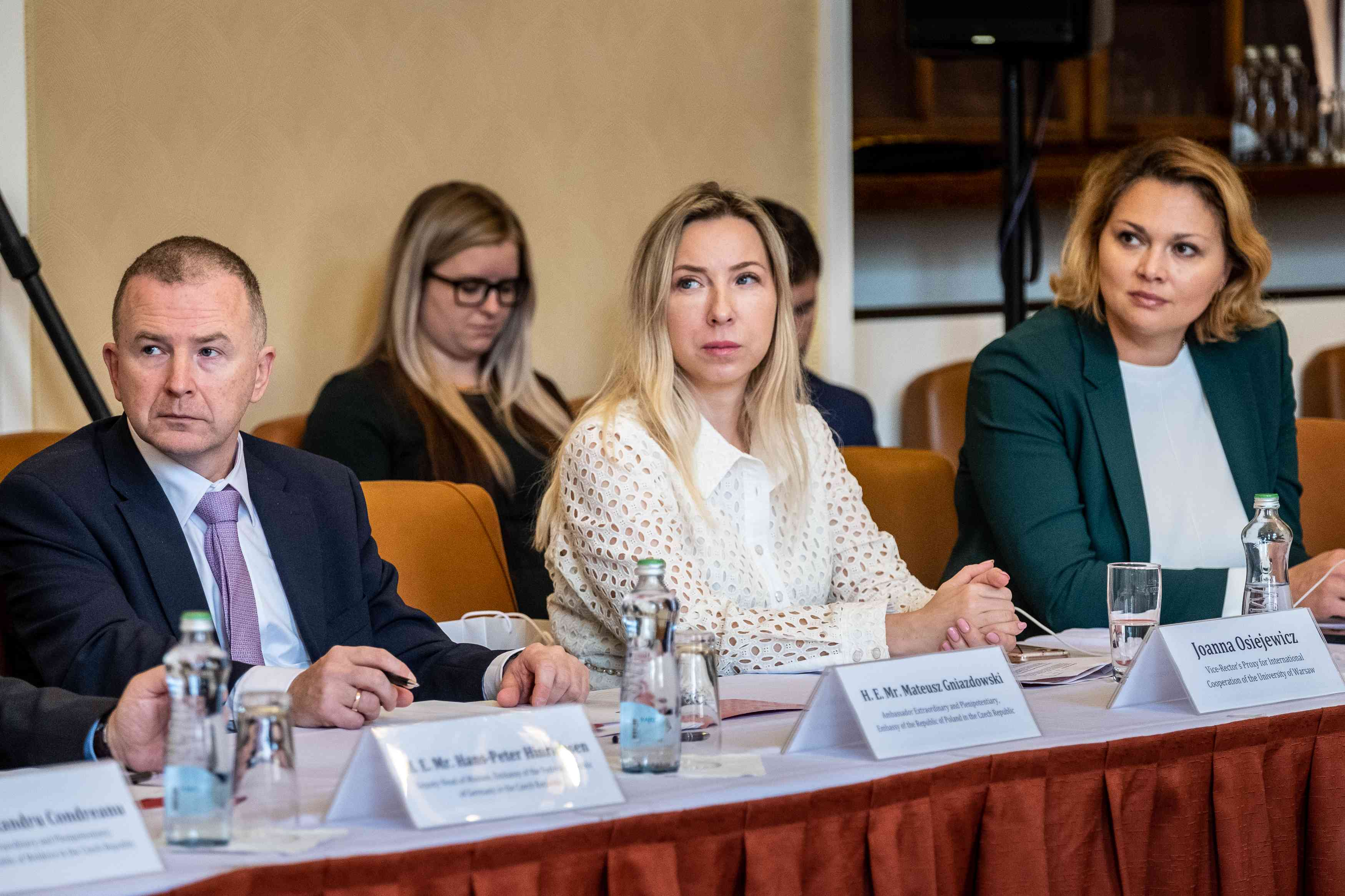 Kromě rektorek a rektorů či prorektorky UK pro zahraniční vztahy Markéty Křížové se jednání i slavnostního aktu ve Vlasteneckém sále zúčastnili rovněž zástupci ministerstva školství (včetně náměstka Jaroslava Millera, emeritního rektora Univerzity Palackého; na snímku opět u řečnického pódia), ministerstva zahraničních věcí či diplomatických sborů.
