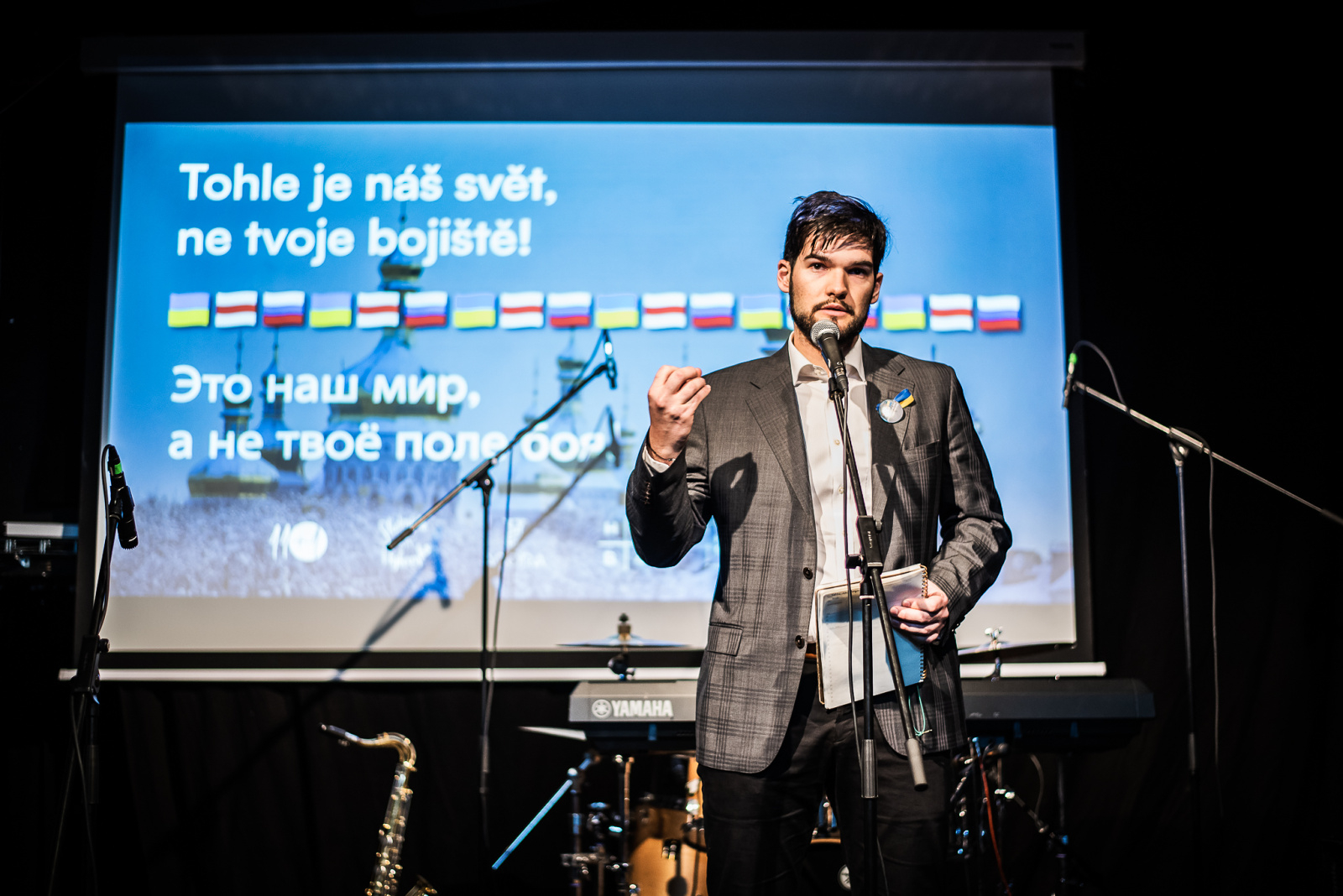 „Bojuje se tu i za naši svobodu,“ vzkázal přímo z ukrajinského Lvova doktor Radomyr Mokryk z Filozofické fakulty UK. Byl jedním z diskutujících na studentském happeningu Tohle je náš svět, ne tvoje bojiště!, který se konal večer 25. února v Kampusu Hybernská.