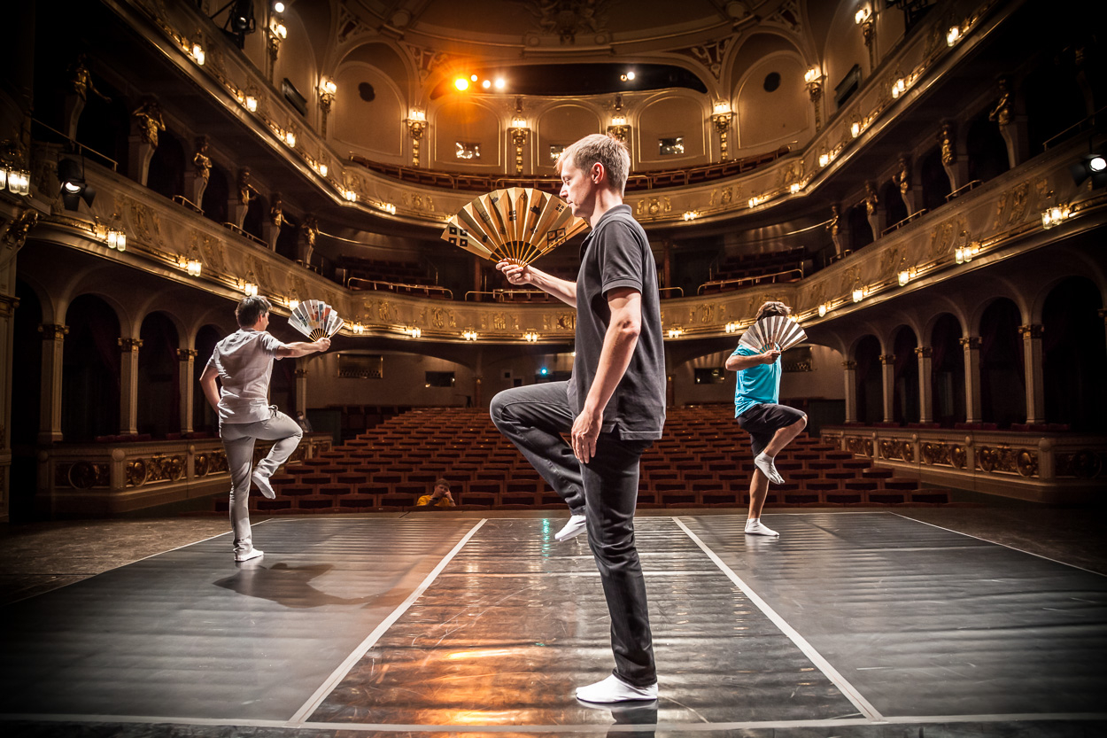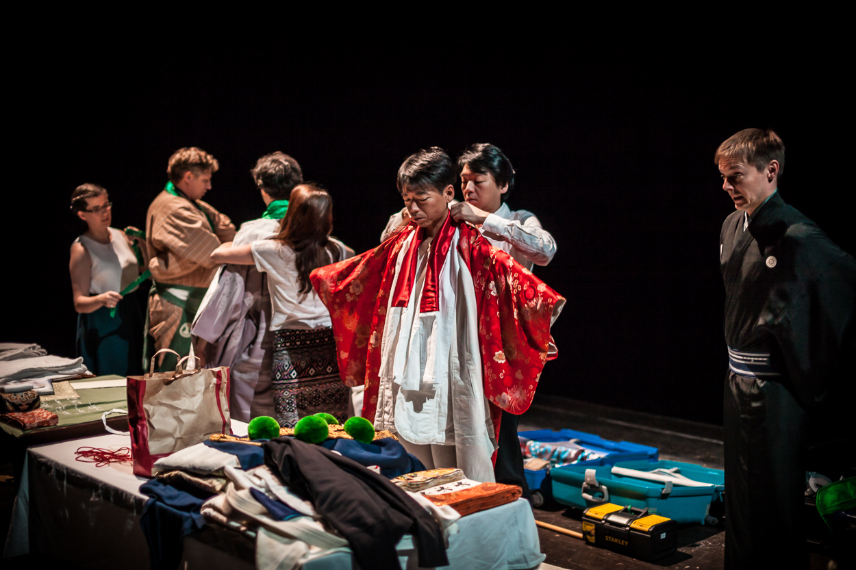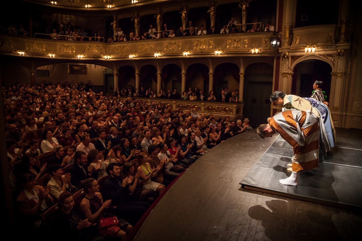 Vyprodané Divadlo Na Vinohradech. Diváci si užili tři hry: česky, dvojjazyčně a v podání japonských mistrů v originálním znění s titulky (2016).