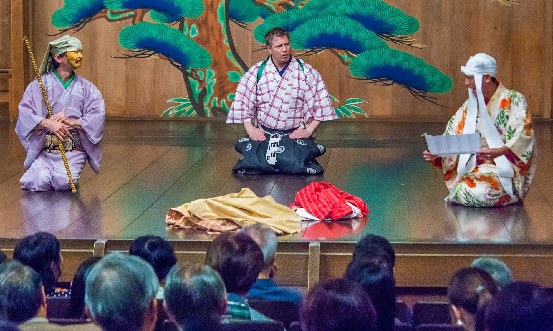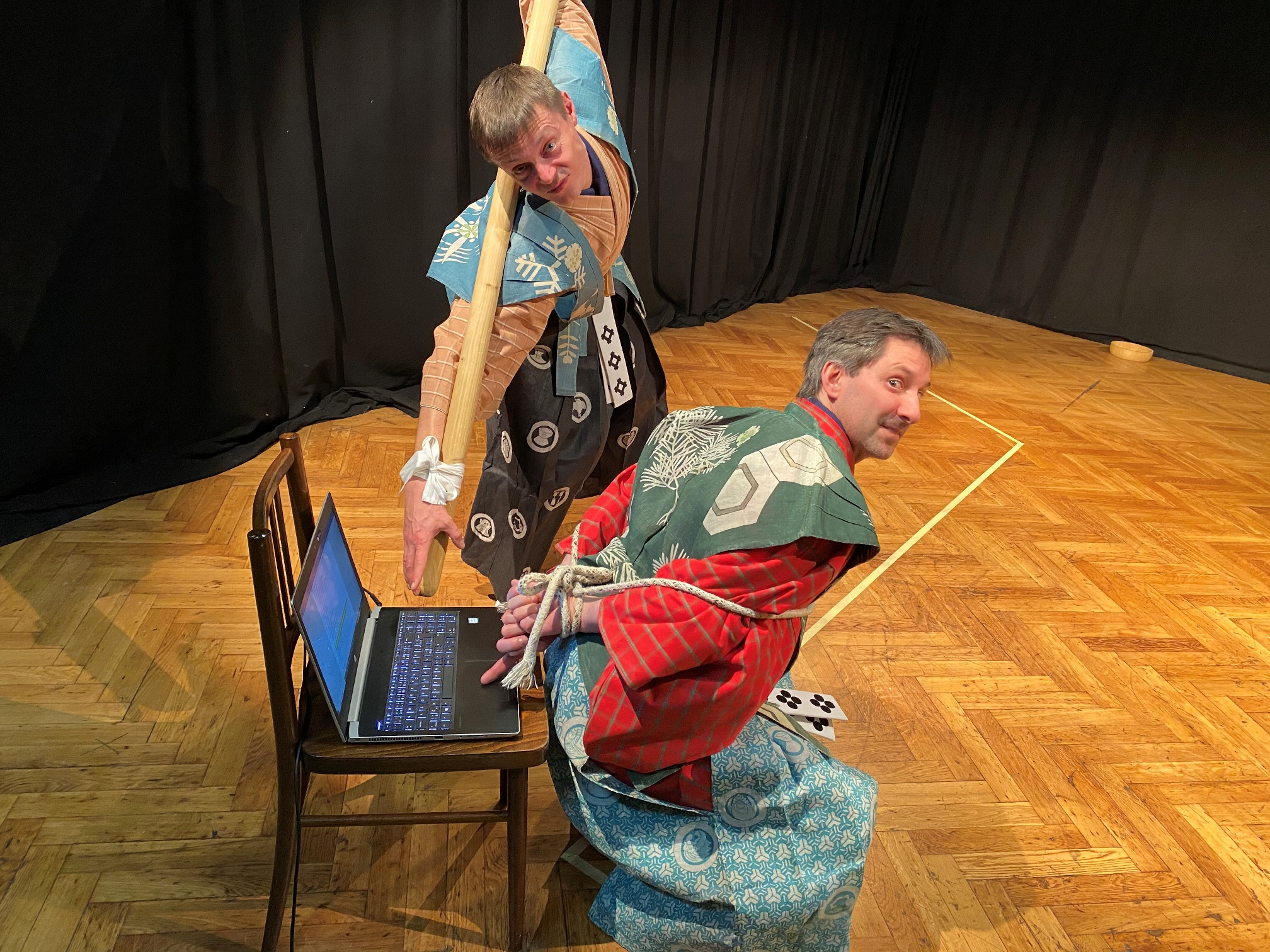 Já bych řekl, že pro celkový úspěch žánru v Česku je nejpodstatnější, že další členové souboru mají zkušenost právě i s naším, českým divadlem. Mají herecké, režijní i scénáristické zkušenosti, které zase chybí mně. Mluvím především o docentu Igoru Dostálkovi, pedagogovi herectví na brněnské JAMU, a Tomáši Pavčíkovi, našemu dnešnímu předsedovi, který také divadlo učí i režíruje. Já novou hru přeložím, připravím pohybové vzorce. Pak ale s Igorem licitujeme o finální podobě textu. Já nechci připustit odklon od originálu, naopak kolegové zase na jeviště nechtějí pustit nic, co by nebylo jevištně funkční. Celé se to tím posouvá kvalitativně dál. Jistě, nezvládáme tak krásný pohyb po jevišti, jako japonští mistři, ale zase si můžeme dovolit trochu živější interakci s publikem. Od profesorky Ótani i několika dalších znalců máme zpětnou vazbu, že možná takhle mohl působit kjógen v Japonsku v době jeho vzniku, než se stal součástí ještě formálnějšího žánru nó.