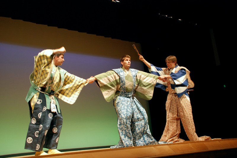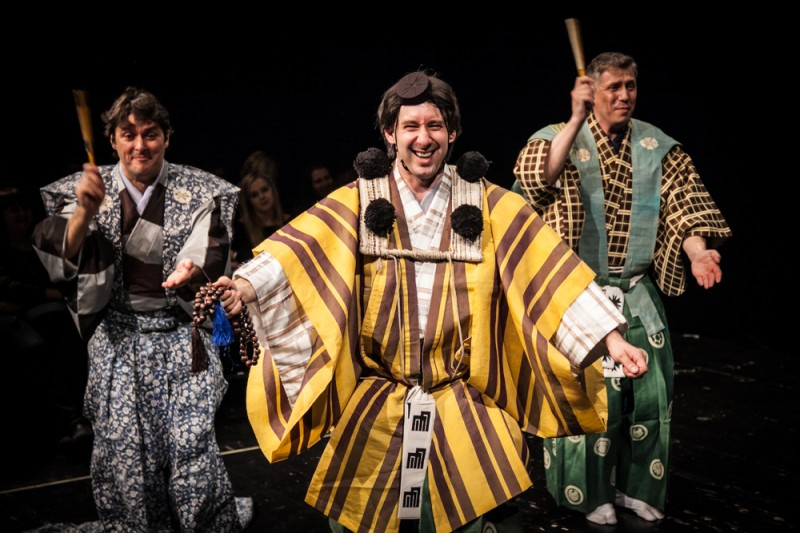 Hra Velké prádlo ve dvojjazyčném provedení. Zprava: Šigejama Motohiko, Igor Dostálek, Michal Chovanec (Tokio, 2016). Foto: Univerzita Hósei