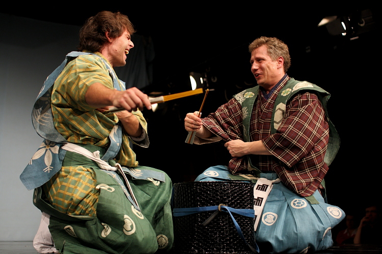 Ondřej Hýbl se Šime Šigejamou v japonsky hraném představení Papouškování (Kjóto, 2004).