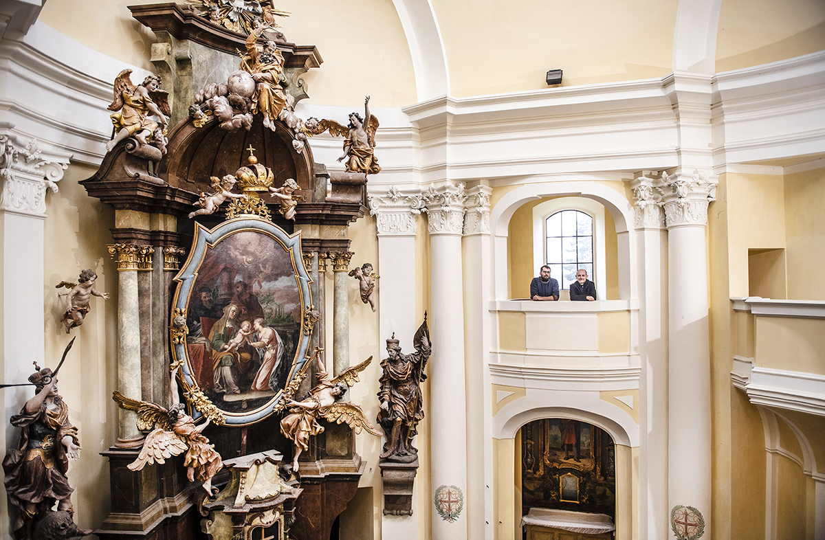 MM: V některých chrámech se cítíte stísněně, ty stavby na vás jakoby šlapou. U Santiniho jsem tohle nikdy necítil, naopak jsem měl pocit vznešenosti. Pocit, že se to snaží soustředit moji pozornost určitým směrem, a zároveň jsem neměl pocit nějaké síly, která na mě tlačí. A to je myslím veliká přednost jeho architektury, že on si hraje a ta hravost je vidět. Po zkušenostech s mnoha jeho místy bych řekl, že jeho stavby mají v sobě prvek, který se tolik nezdůrazňuje, a to je radost. Třeba v Kladrubech, což je původně gotická záležitost, a výrazně vertikální, tak tam je křížení, které má v sobě v podstatě ohňostroj.