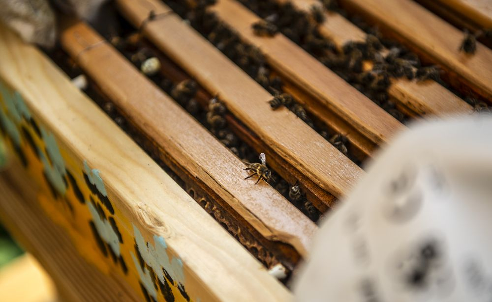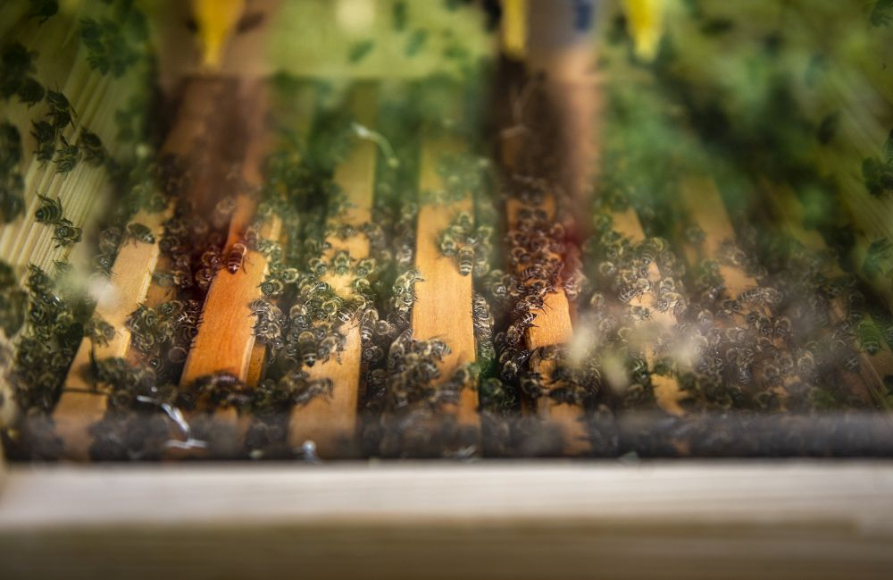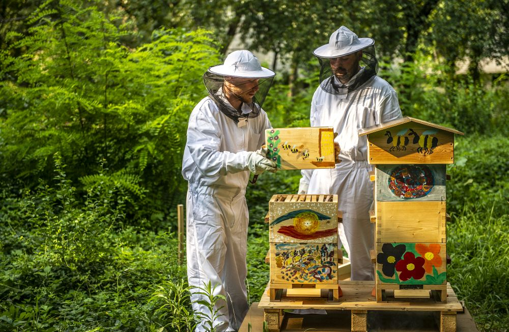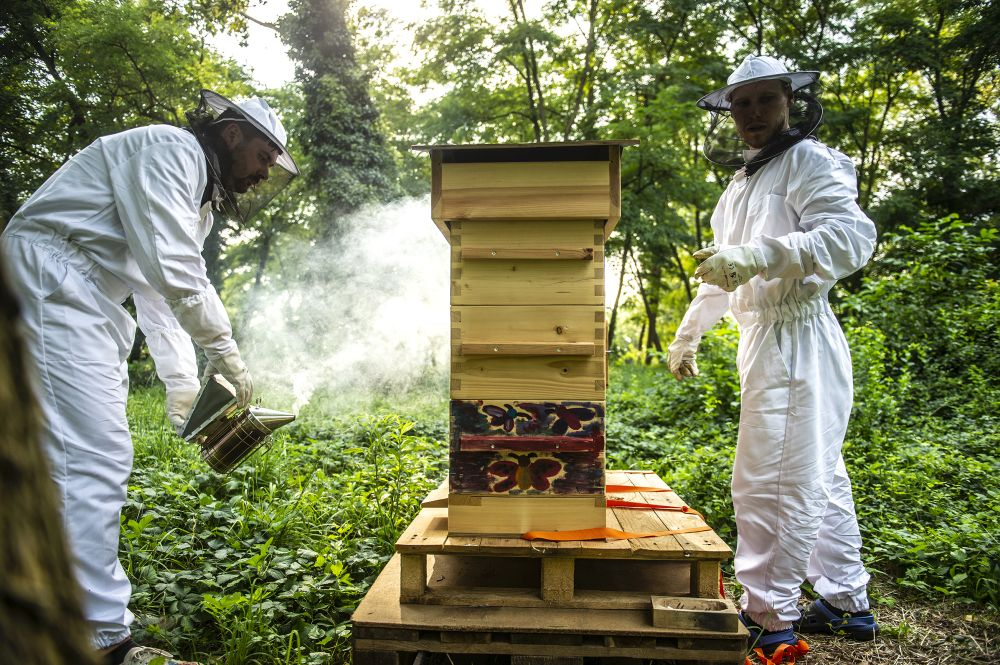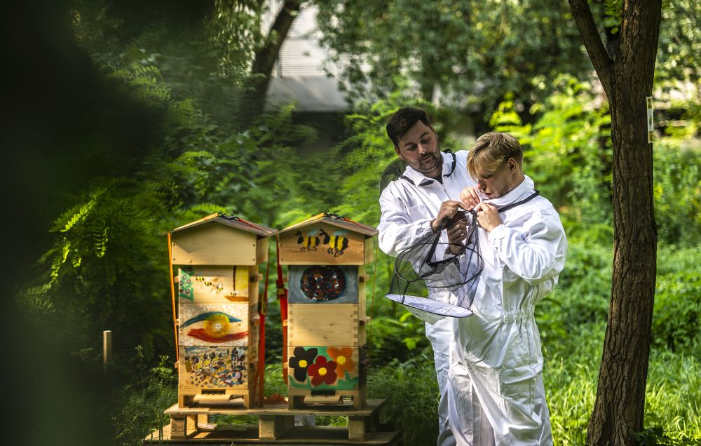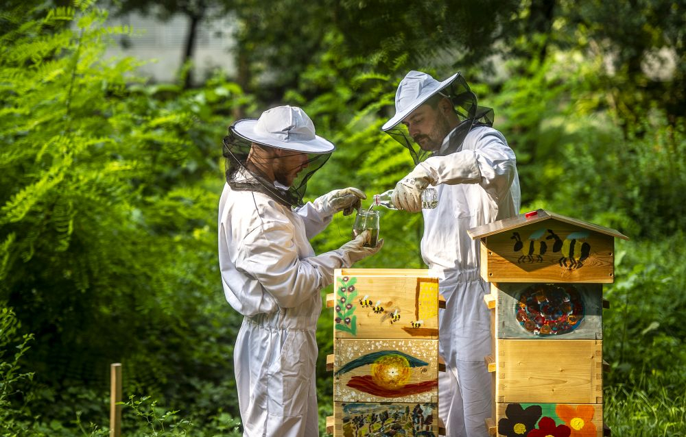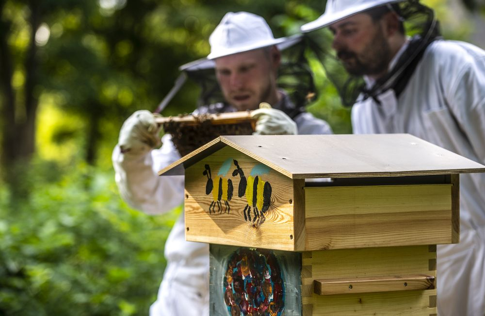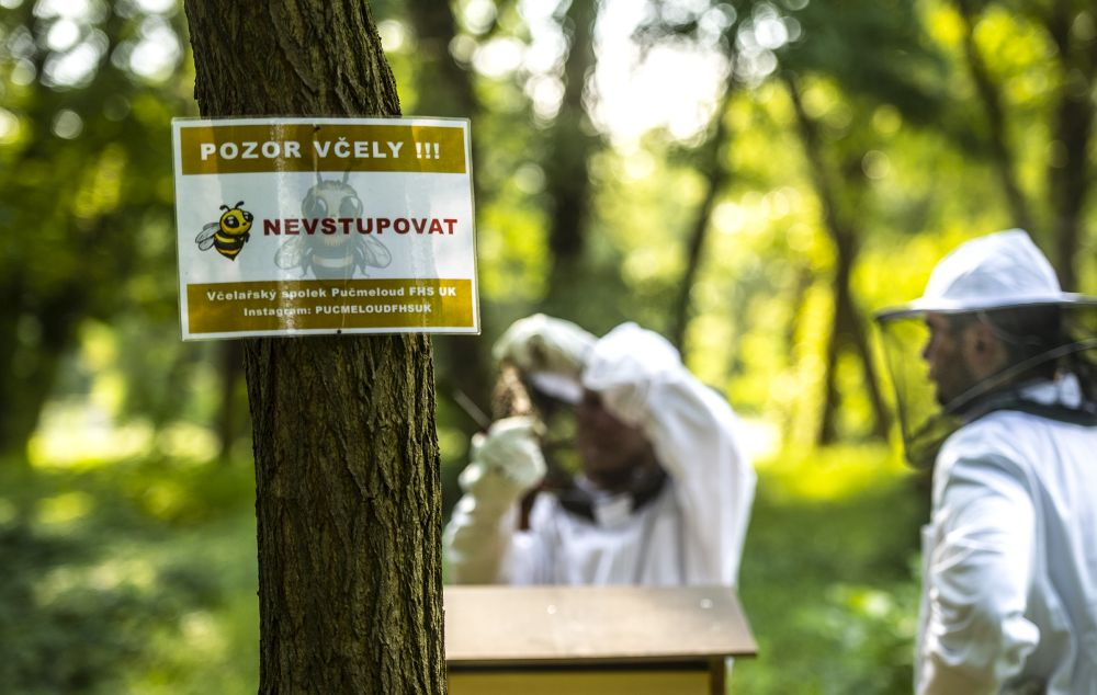 Zatím tam stojí dva. „To je takový minimální počet pro zachování včelstva, příští rok bychom ale rádi přidali třetí,“ zamýšlí se Antonín Vávra, když sundává stříšku včelího úlu, aby mohl svým svěřenkyním osladit život cukerným roztokem. „Včelstvo je zatím slabé, musíme ho dokrmovat. Dnes ale pěkně lítají, je vidět, že sílí,“ spokojeně se usmál. Vedle Antonína do úlu opatrně nakukuje jeho spolužák z Fakulty humanitních studií UK Ondřej Koc. Společně při FHS UK totiž založili včelařský spolek Pučmeloud. Nejen že během léta okolí fakulty rozehrál včelí bzukot, vyrůst by tam měla také permakulturní, tedy udržitelná zahrada, kde si budou moci studující a vyučující z přilehlých fakult a kolejí odpočinout. Na její vybudování získali studentský grant na podporu udržitelného rozvoje na UK.
