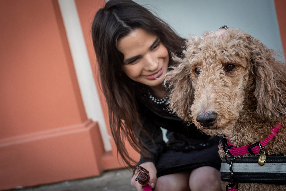 A: V základu mě zaskočilo, že Debi vůbec nabrala odvahu studovat vysokou školu navzdory takovým překážkám, které ji život přinesl. Její podmínky ke studiu jsou o tolik těžší než moje, a přesto s tím statečně bojuje a zvládá to. A druhá věc, co mě velmi, ale nemile překvapila, je jak jsou lidé okolo nevšímaví a ignorantní. Často jsme přecházeli mezi budovami FF na Palachově náměstí a Celetnou ulicí a lidé okolo často jen koukají do telefonu a úplně ignorují člověka s vodícím psem i samotného nevidomého. To byl pro mě velký šok.