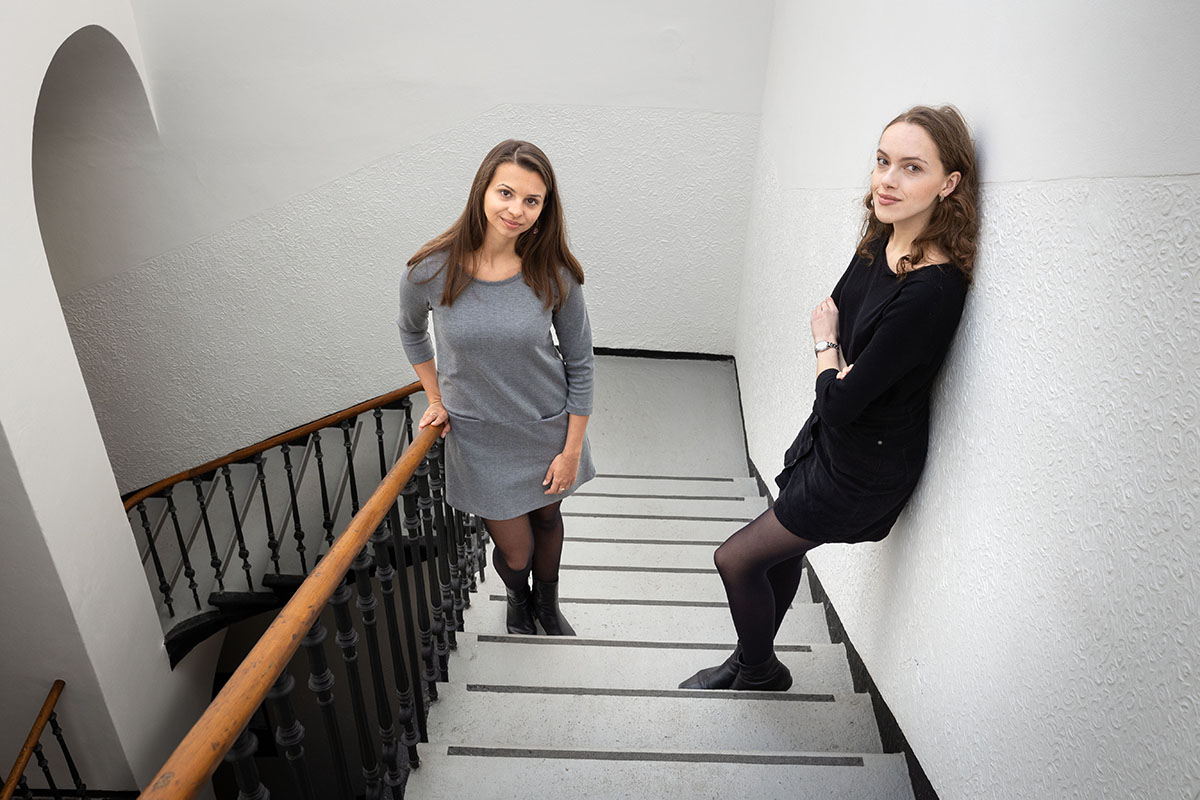 Autorky podcastu Kunsthistoričky: Adéla Šatalíková (vlevo) a Klára Heřmánková, které studují dějiny křesťanského umění na KTF UK.
