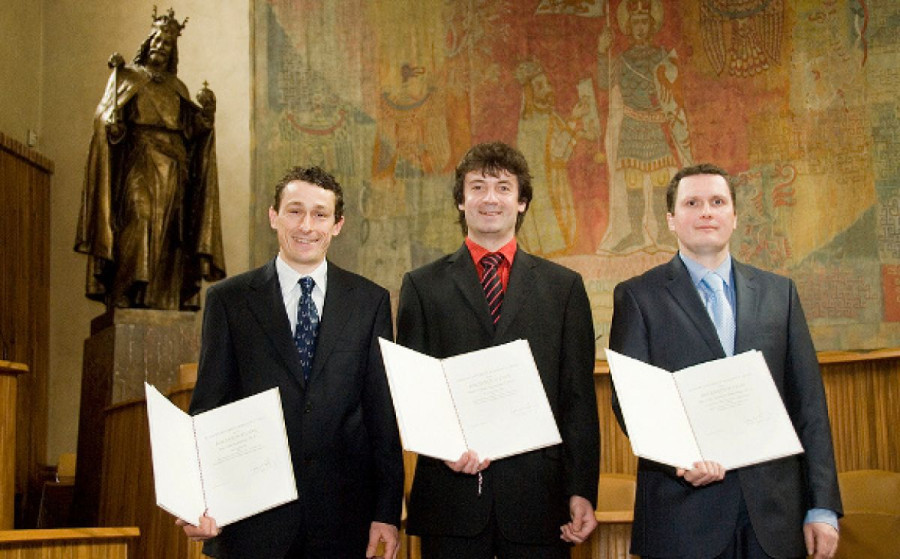 Rektor Univerzity Karlovy prof. RNDr. Václav Hampl, DrSc., vyznamenal Bolzanovou cenou trojici studentů UK za jejich výjimečně kvalitní vědecké práce. Mezi oceněné patří Mgr. et Bc. Martin Dekarli, Th.D., Mgr. Vít Pospíšil, Ph.D., a RNDr. Jiří Tauchman, Ph.D.