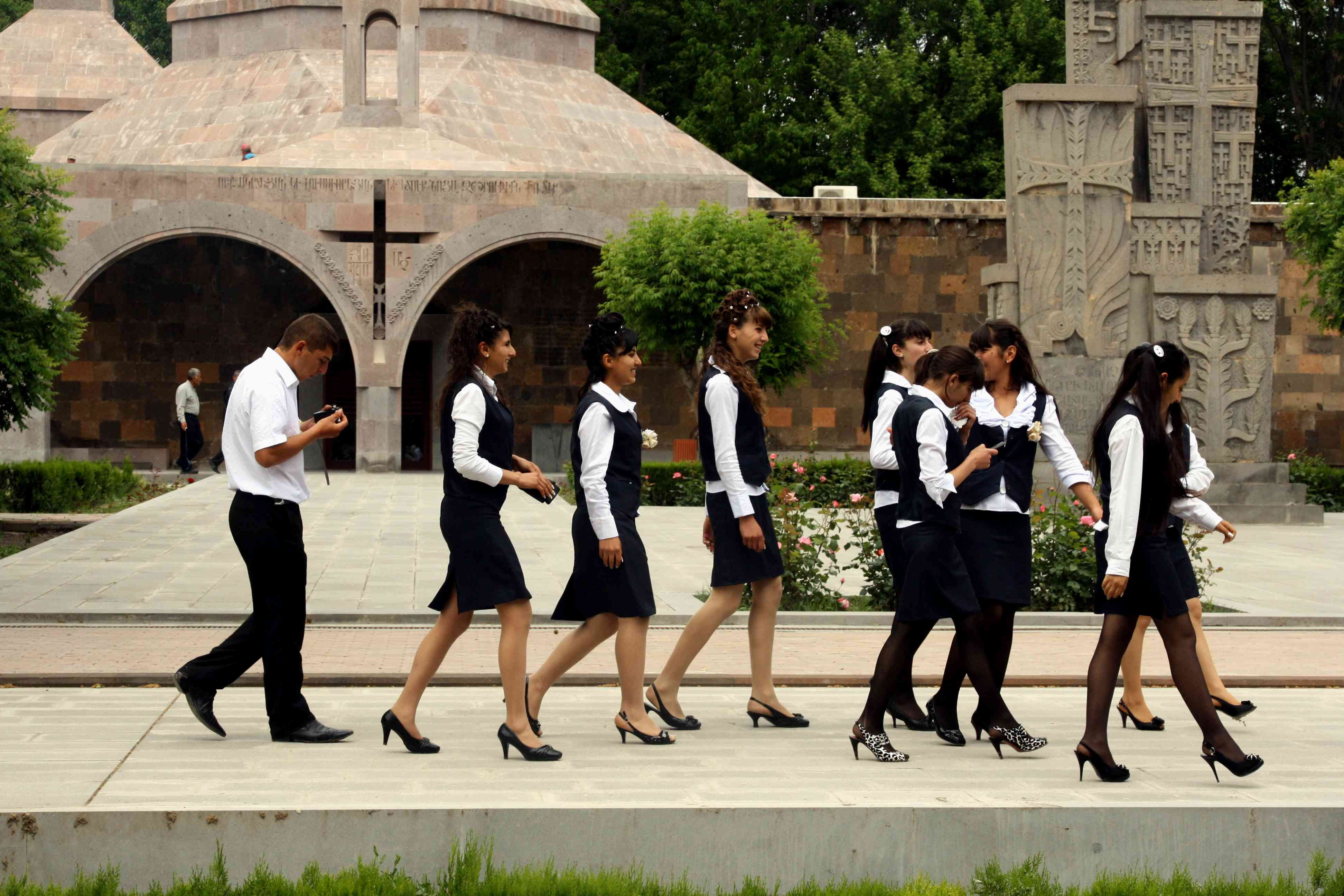 A odtud už je jen krůček k tomu, aby se komunita „stáhla“ před vnějším světem sama do sebe, aby mu a priori nedůvěřovala... Právě arménské církevní svátky a prostor před kostelem (vlevo na ilustraci z 19. století posvátný Ečmiadzin) pak sloužily jako hlavní místa setkávání, kde se domlouvaly sňatky, obchody a podobně – svatba s jinověrcem by pak byla vlastně porušením tradic.