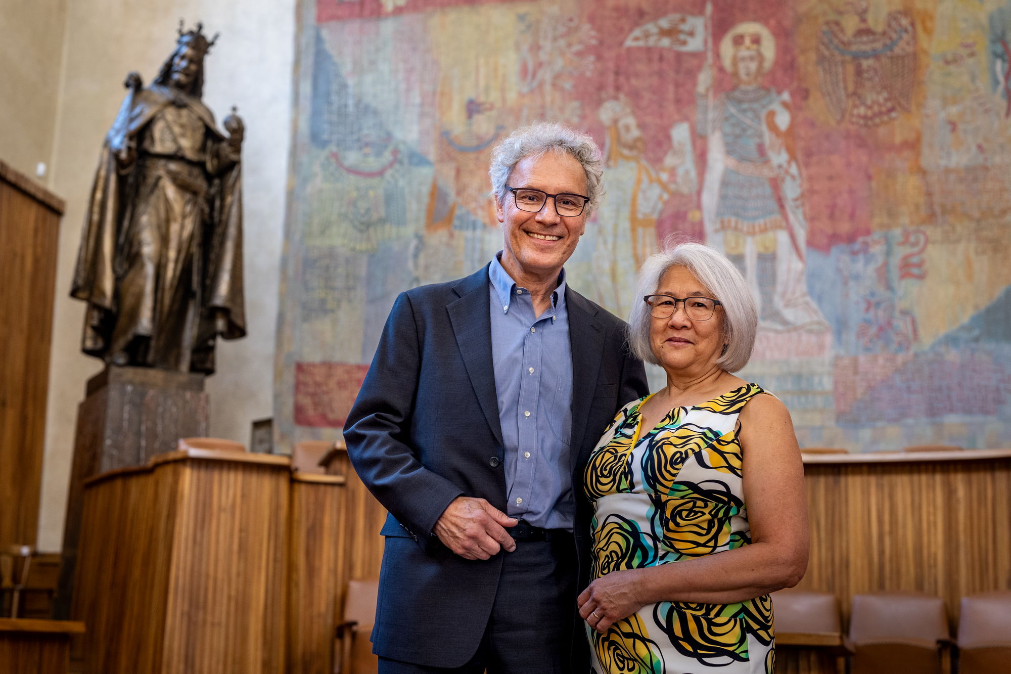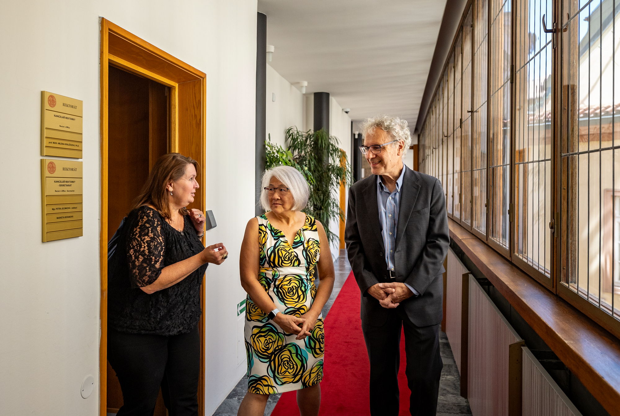 Victor Ambros a jeho žena Candy Lee Ambros navštívili Univerzitu Karlovu na pozvání rektorky Mileny Králíčkové a prohlédli si při té příležitosti historickou budovu Karolina.