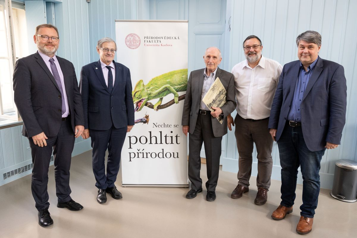 Profesor Jiří Zima, děkan Přírodovědecké fakulty UK, předal tak trochu „svému“ absolventovi stříbrnou medaili mateřské fakulty a současně vyjádřil uspokojení a radost z jeho návštěvy na univerzitě a fakultě.