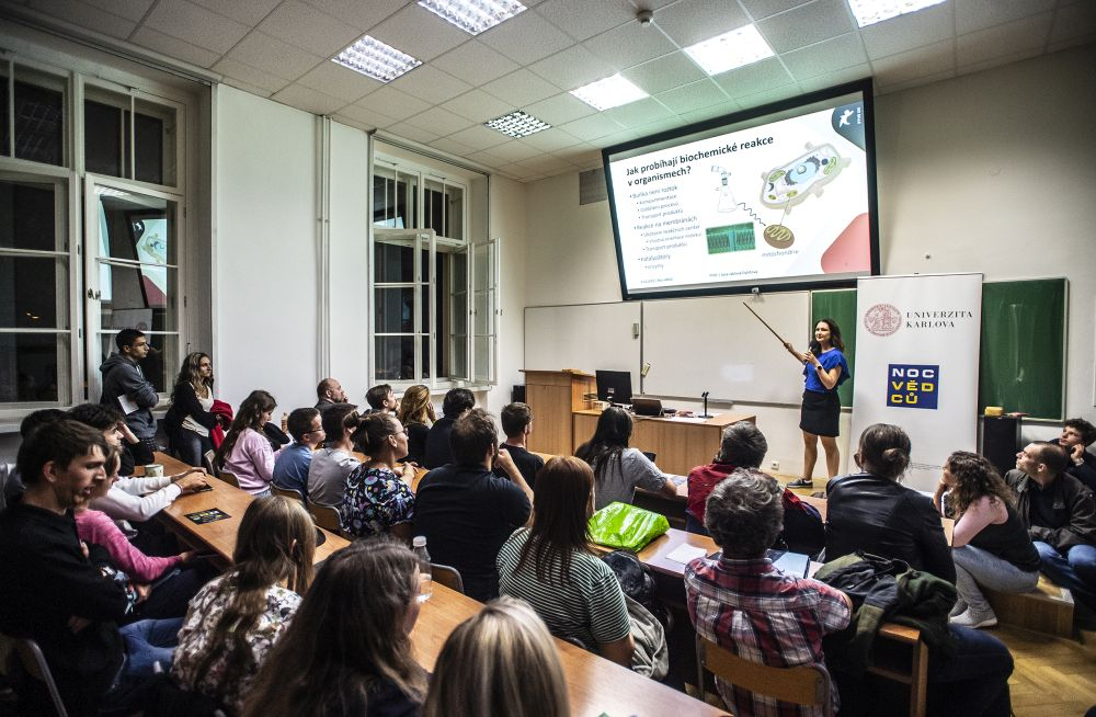 Budovy Přírodovědecké fakulty UK na pražském Albertově se staly v pátek večer jedním z univerzitních center Noci vědců. Svůj zábavně-naučný program tam představilo hned čtrnáct univerzitních fakult. A bylo z čeho vybírat. Dospělí návštěvníci ocenili celou řadu přednášek zaměřených na rozmanitá témata od tajemství dlouhověkosti, o kterém hovořila Tereza Vágnerová z 1. lékařské fakulty UK, až po přednášku o tajemství božího jména, již přednesl profesor Martin Prudký z Evangelické teologické fakulty UK.