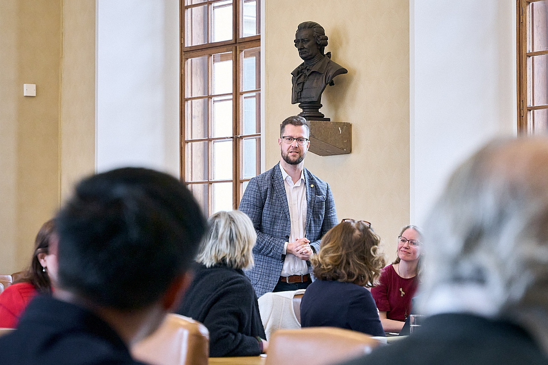University of Copenhagen medical student and member of the Academic Council Jesper Gür in discussion at the Prague 4EU+ meeting.