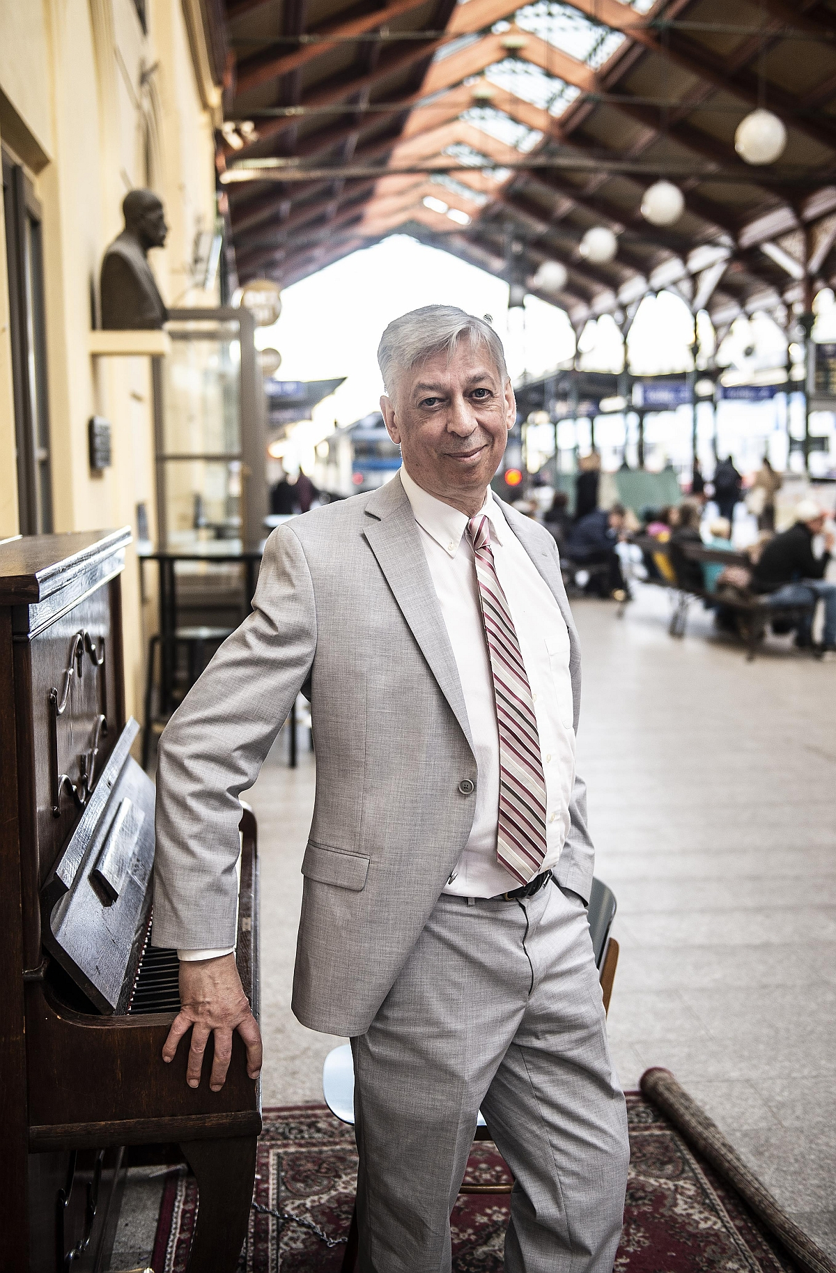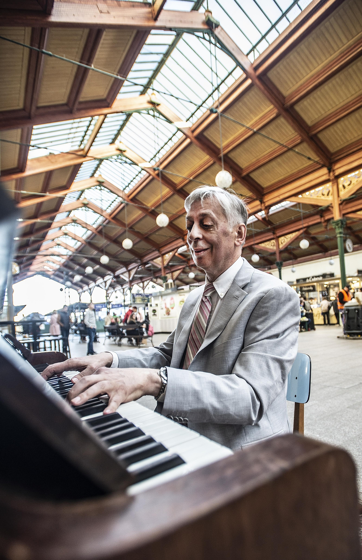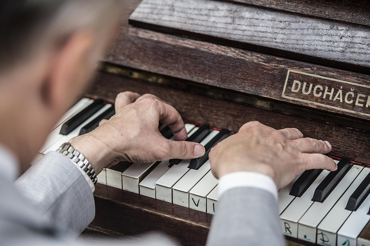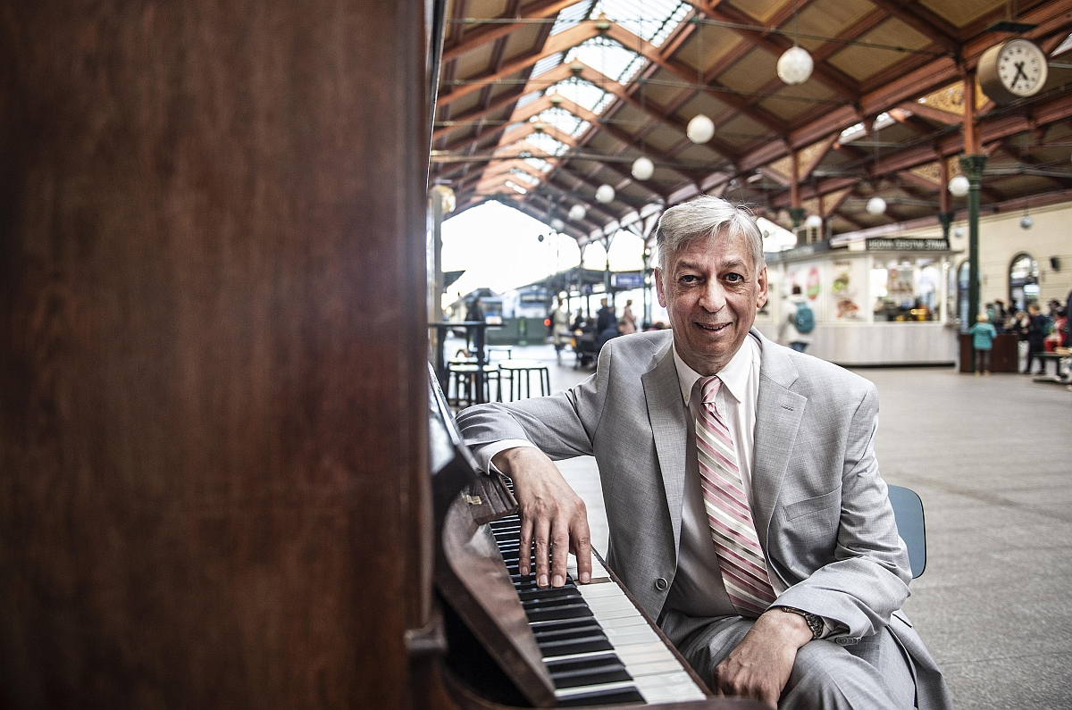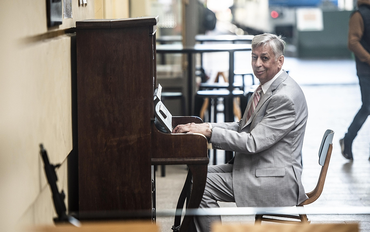 American musicologist Daniel E. Freeman at a Piano in the streets piano at Masaryk train station in Prague. October 2022.