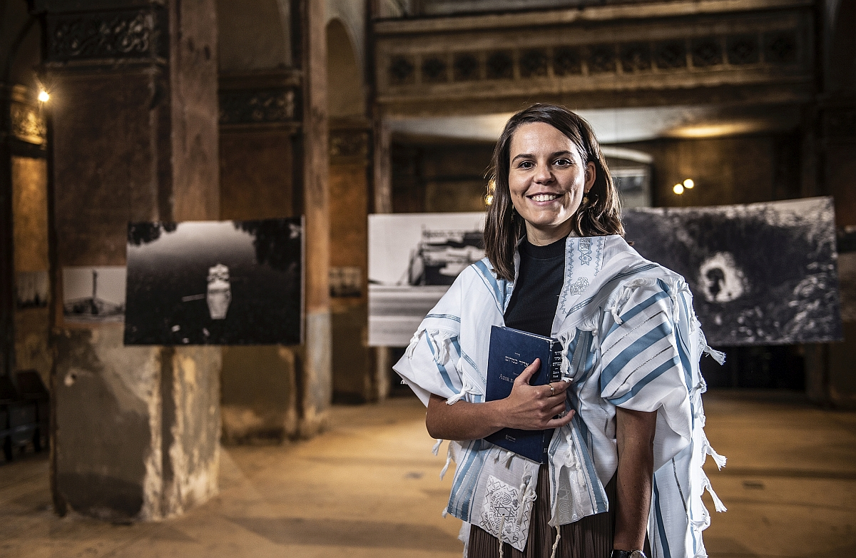 Kamila Kopřivová - set to become the Czechs' first female rabbi - at the fantastic Libeň Synagogue. September 2022. Portrait by Vladimír Šigut.