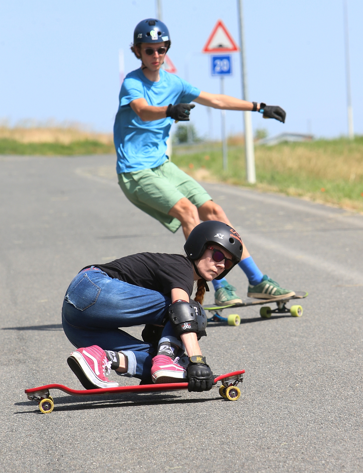 Over the last few years, more and more young people in the Czech Republic have taken up longboarding, a hobby and sport related to skateboarding but different in many respects. Longboards, as the name suggests, utilise a longer deck but feel very different, offering a more stable ride on softer polyurethane wheels. There are decks for every kind of rider and for different uses: cruising (traversing park paths or getting around town), carving on hills, freestyle, dancing, slalom, as well as the jaw-dropping adrenaline sport known as downhill longboarding. Downhill, for short.