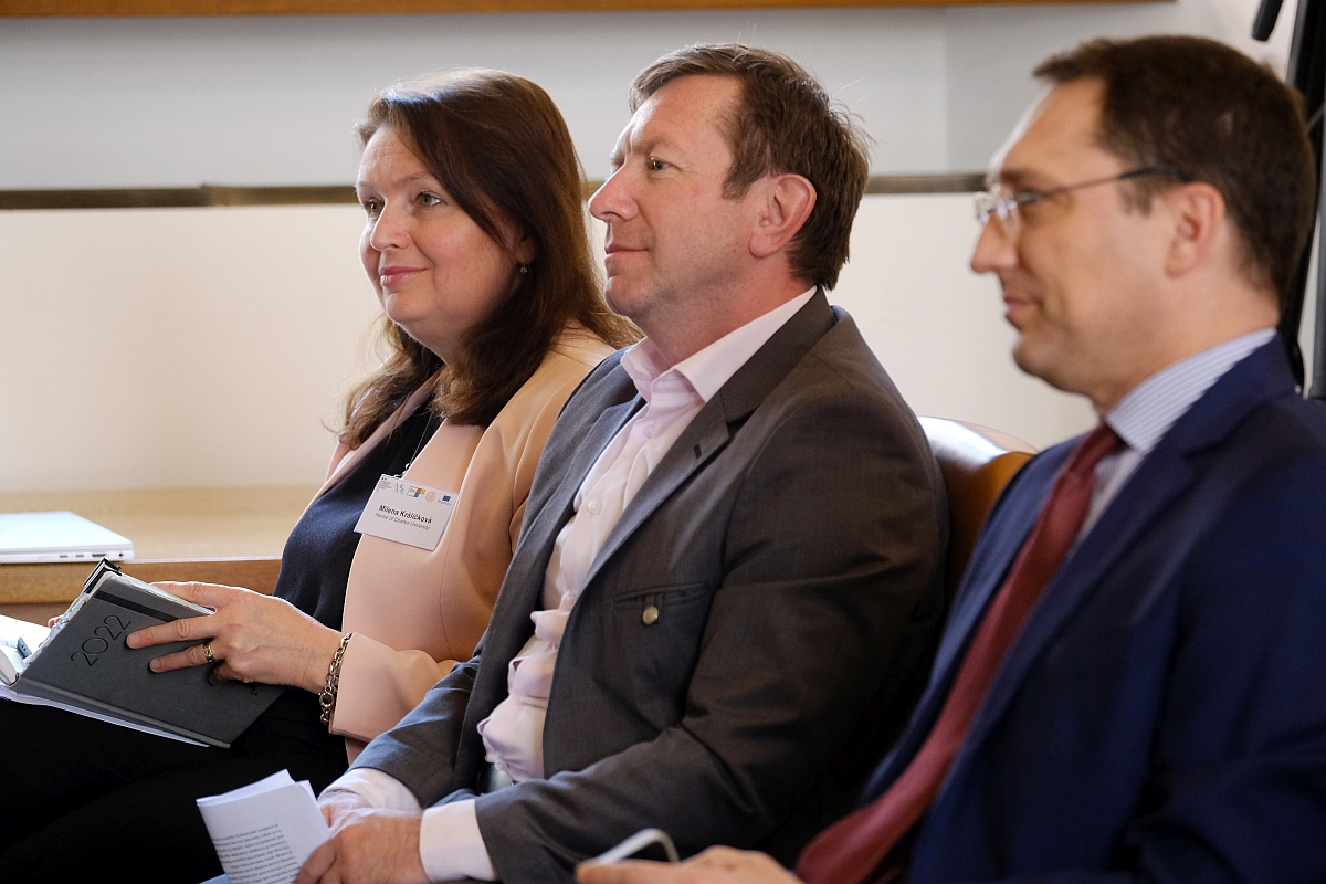 Wednesday’s event, emceed by Věda & Výzkum’s Aleš Vlk, was divided into three presentation and discussion blocks, the first of which included an introduction by Charles University Rector Milena Králíčková. Welcoming guests and attendees at the Patriotic Hall in the Carolinum (among the three oldest university buildings in the world including Oxford and the University of Bologna), the rector spoke of university autonomy, freedom in innovation and research, and the need for universities to serve but also be driven by society. She spoke about the importance of prestigious 4EU+ alliance, bringing together six universities including the University of Sorbonne, Heidelberg, Charles University, and the universities of Milan, Warsaw, and Copenhagen, founded in the first call, and funds available in 2022. Universities (and by extension university alliances) will only gain in importance in the future. Rector Králíčková: