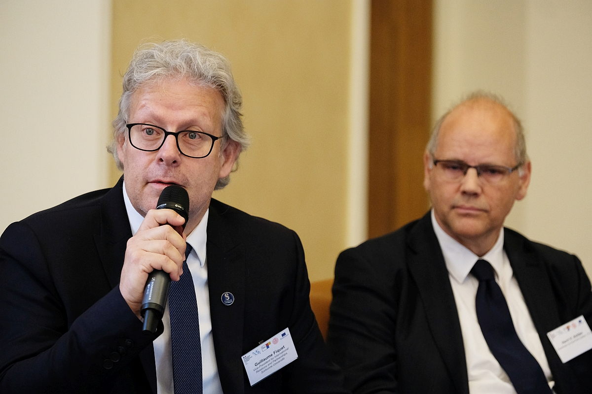 The agenda then saw the other speakers take the floor, as well as a live address by MEP Michaela Šojdrová. Asked what she considered to be significant contributions by the Czech Republic, she mentioned strong university autonomy, reform legislation from the late 1990s, and the fact that education remained free to young Czech students, which she said had not been easy to maintain or achieve. That was followed by a panel debate including five guest speakers from Czech universities and from Sorbonne Université on the subject of civic engagement. Those who took part were: Dalibor Mikuláš of Palacký University, Guillaume Fiquet from Sorbonne Université, Damir Solak from the Student Chamber of Higher Education Council, Vice-Rector at CUT Zbyněk Škvor, Henri Hubertus Achten from CUT.