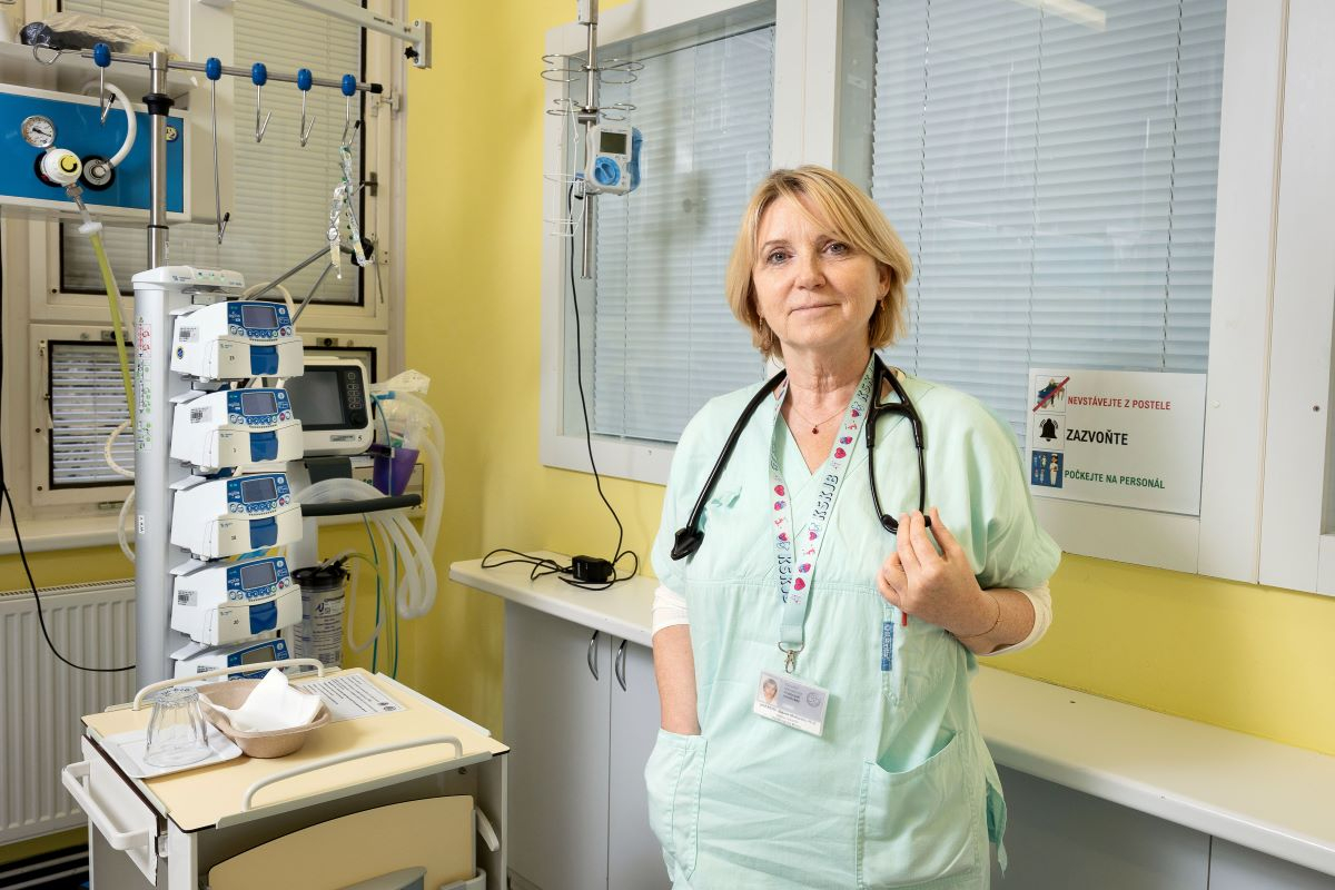 nurse of the coronary unit, Denisa Odvodyová – station nurse, Professor Motovská, Dr Martin Kozel, Dr Karolína Poledníková.
