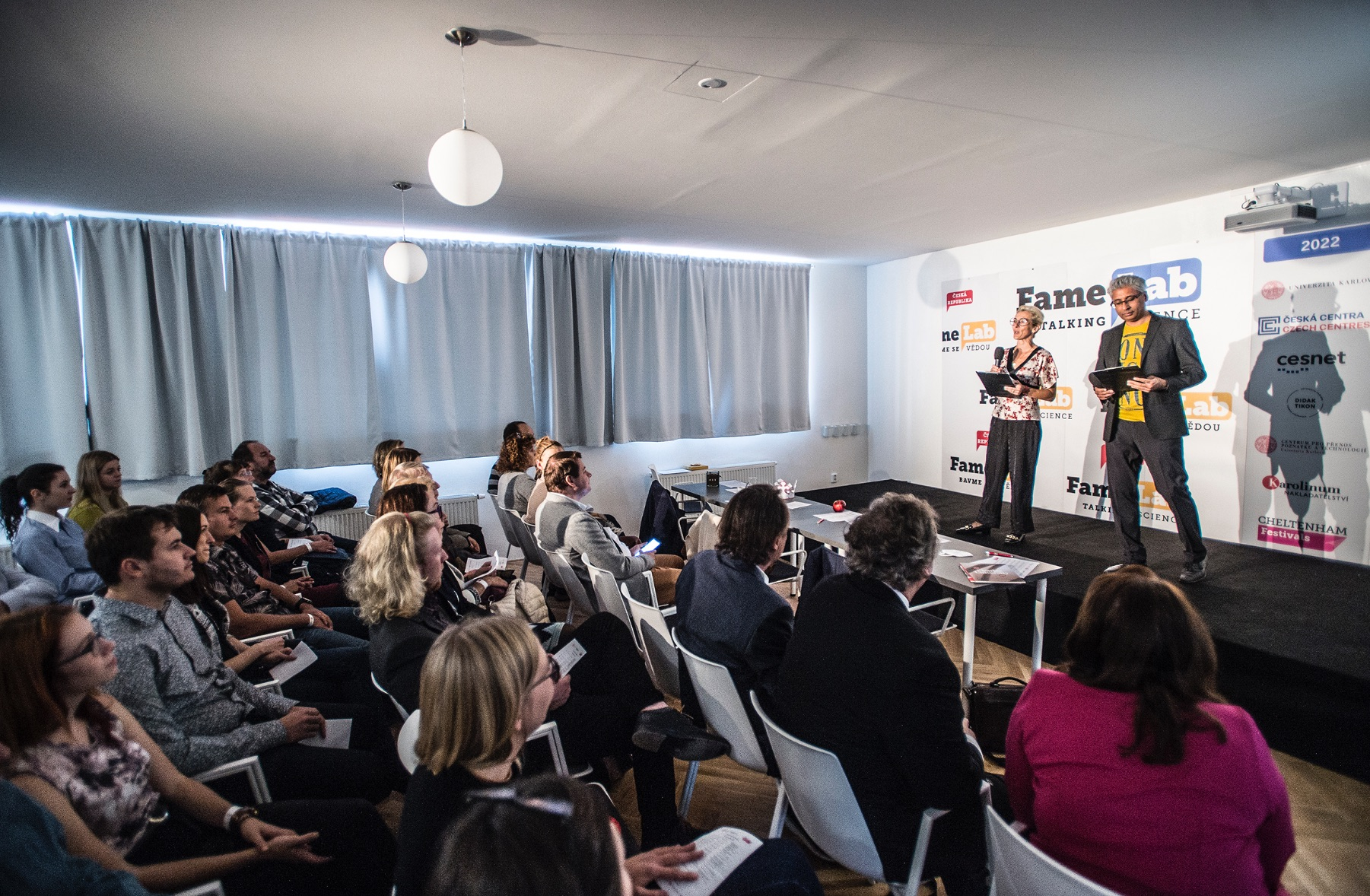 The final evening of the Czech round of FameLab took place during Researchers Night at Kampus Hybernská. Eleven contestants competed for the win through three-minute scientific presentations. Think a kind of really short TedTalk. “For the jury, the decision was not easy at all. It was a very balanced and strong year. Each of the contestants deserved to win in some aspect - some stood out for their wit, others for their use of tools or explanation of scientific issues,” the honorary chair of the jury and rector of Charles University Milena Králíčková said. She decided on the best entries together fellow jury members: former winner of this competition Eliška Selinger, epidemiologist Petr Smejkal and populariser of cosmonautics Jan Spratek.