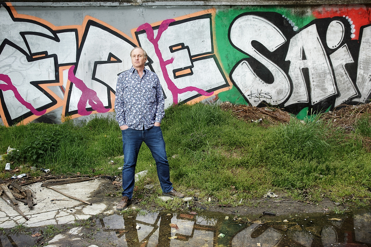 Social anthropologist Radan Haluzík, an expert on terrain vague in the Czech Republic, poses by a building that has seen better years.