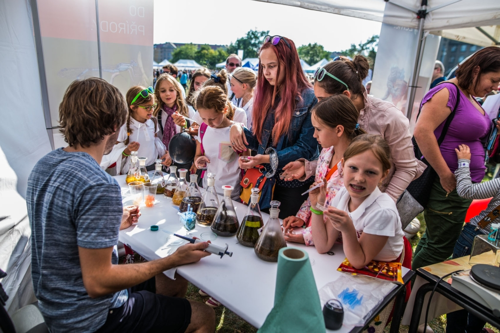 Festival vědy, který se včera uskutečnil na pražském Vítězném náměstí, si dal za cíl představit populárním a interaktivním způsobem přírodovědné a technické obory. Univerzita Karlova se ho účastnila jako hlavní akademický partner, ukázat dětem vědu v trochu jiném světle se rozhodlo hned osm jejích pražských i mimopražských fakult.