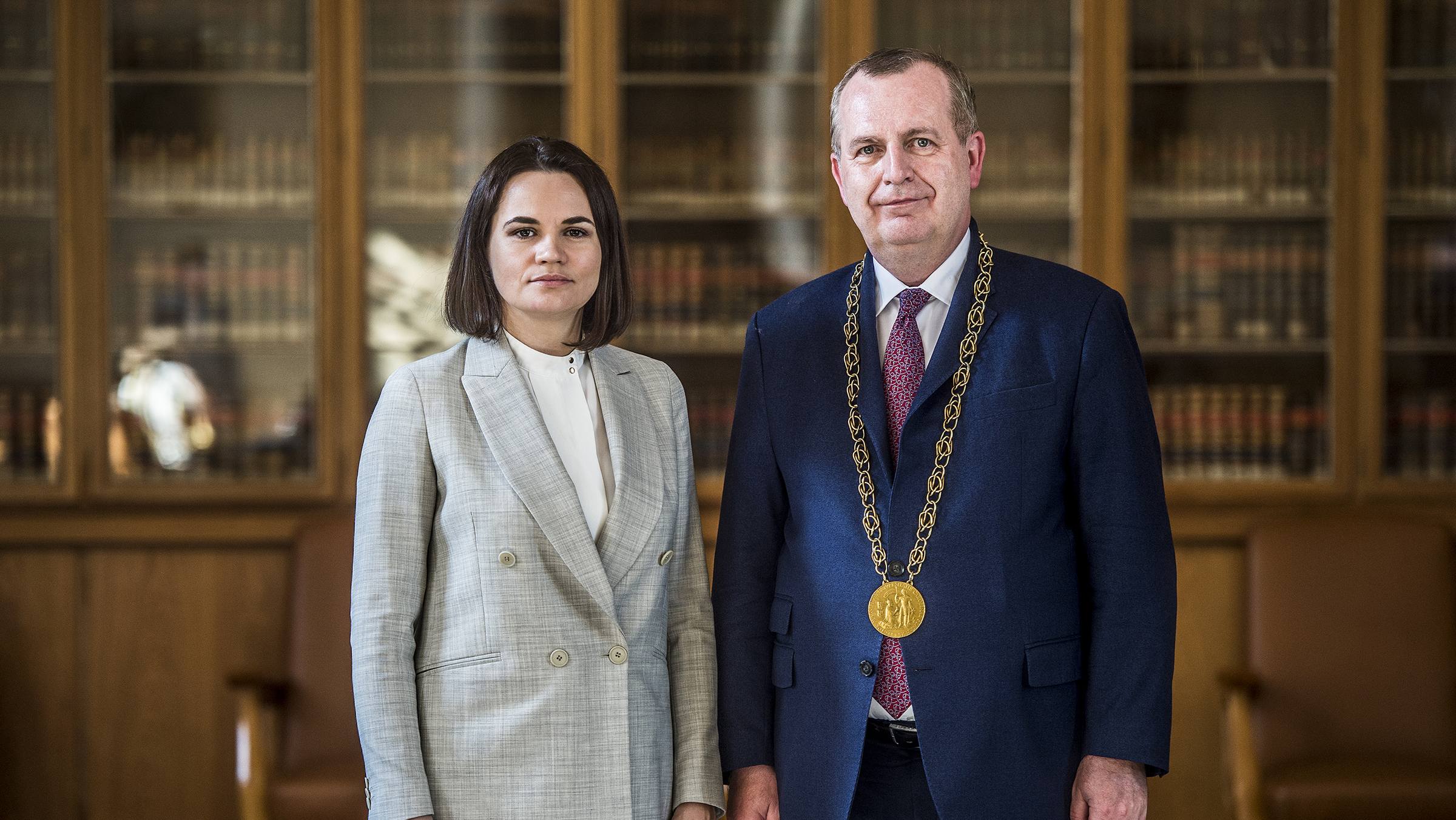 Běloruská opoziční vůdkyně Svjatlana Cichanouská je na čtyřdenní návštěvě České republiky a v pondělí odpoledne se spolu se svým týmem sešla také k jednání na Univerzitě Karlově. Na programu schůzky byly způsoby pomoci studentům a podpora demokracie v Bělorusku.